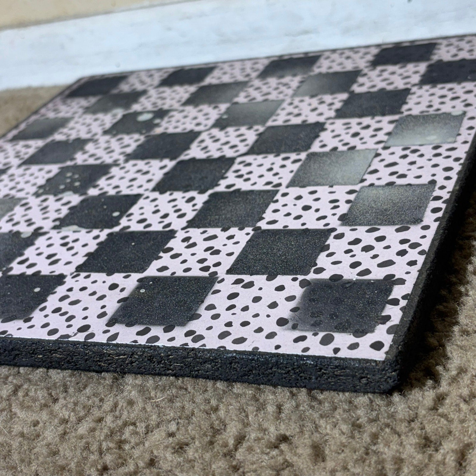 Each board features a layer of beautifully Scrapbook Paper Fused/Glued with particle board to give it a unique pretty pattern. We then paint squares onto the board to make them into fabulous chess boards. Made with a sturdy particle board base and smooth, beveled edges, this board is stunning.
