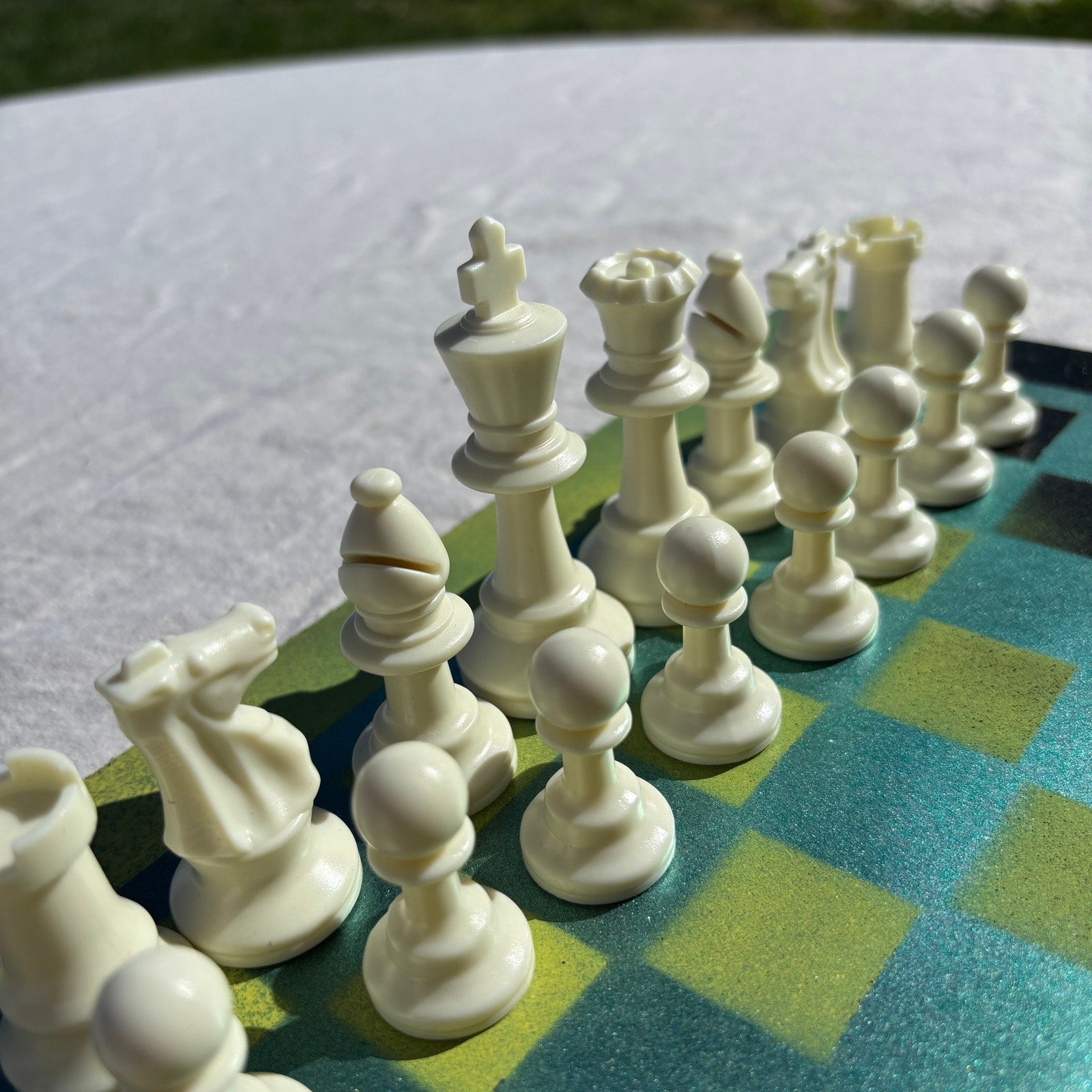 Introducing our exclusive Handcrafted Hardboard Chess Set, meticulously designed with precision and care. Measuring 12 inches by 12 inches, this chess set features a beautifully painted hardwood board that doubles as a work of art. Each set is a unique, one-of-a-kind creation, crafted by hand to ensure that no two sets are alike. Elevate your gaming experience with this exceptional chess set that combines vibrant design with the touch of artisan craftsmanship.