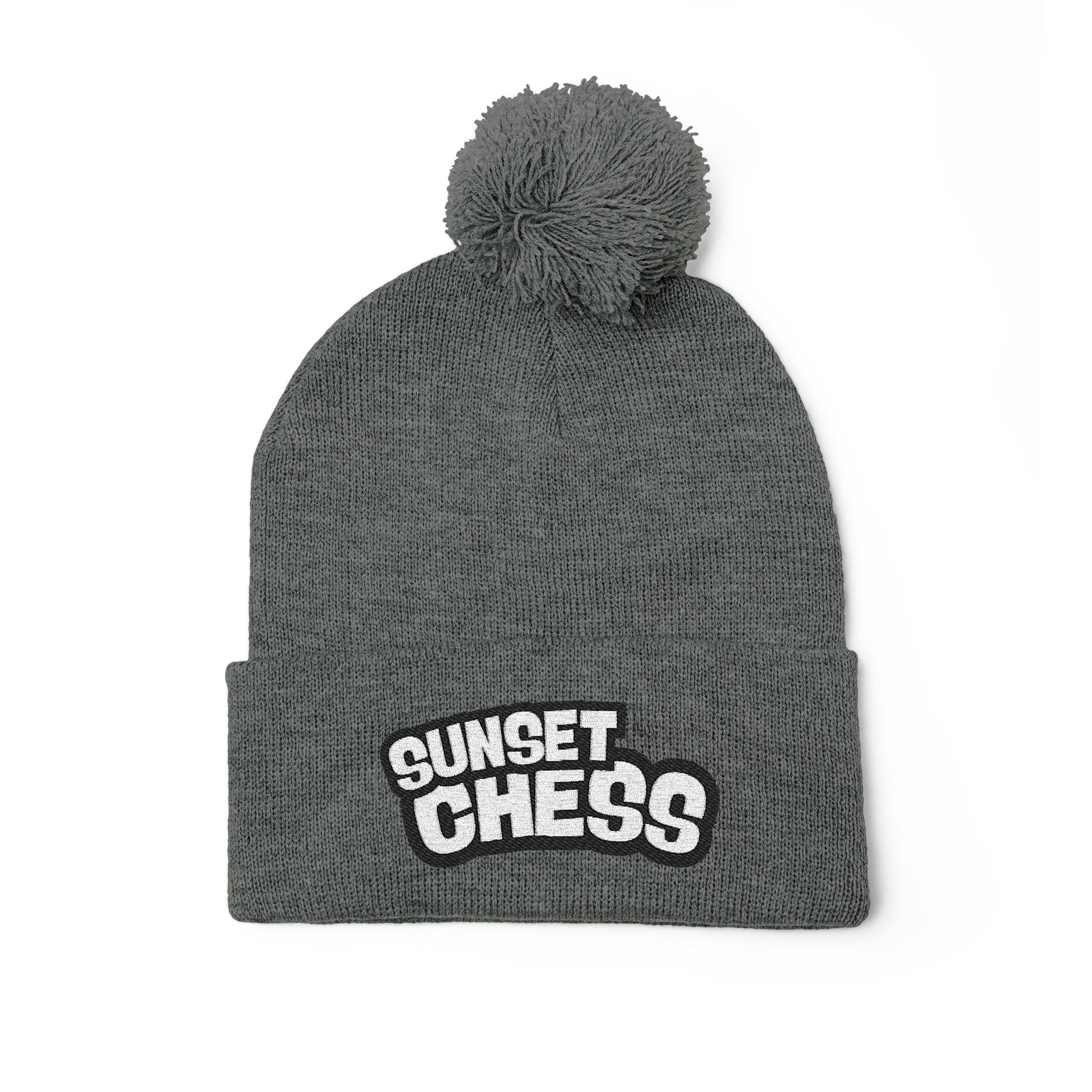 Sunset Chess - Dark Gray Pom Pom Beanie