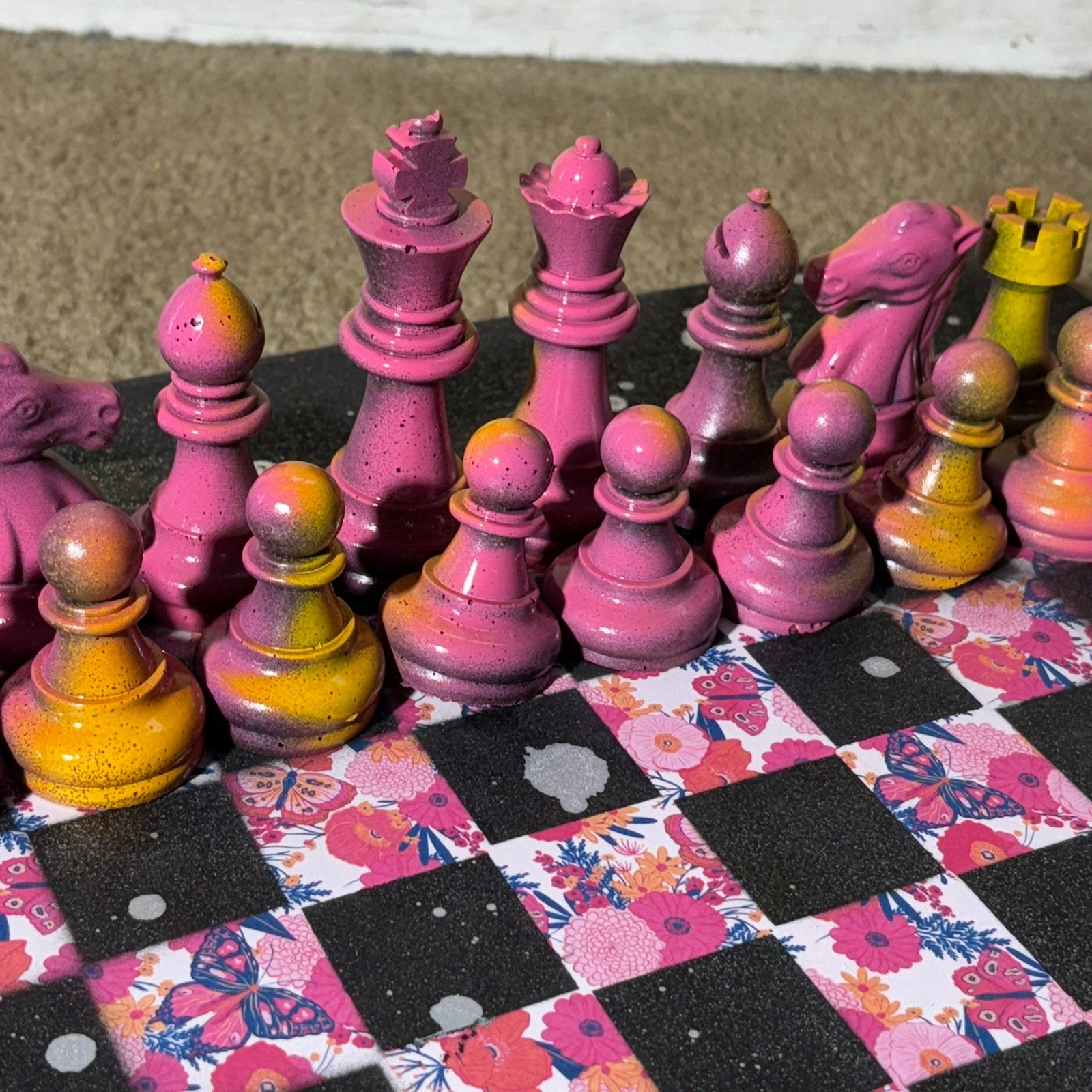 Sunset Flowered Pink - Large Deluxe Chess Set