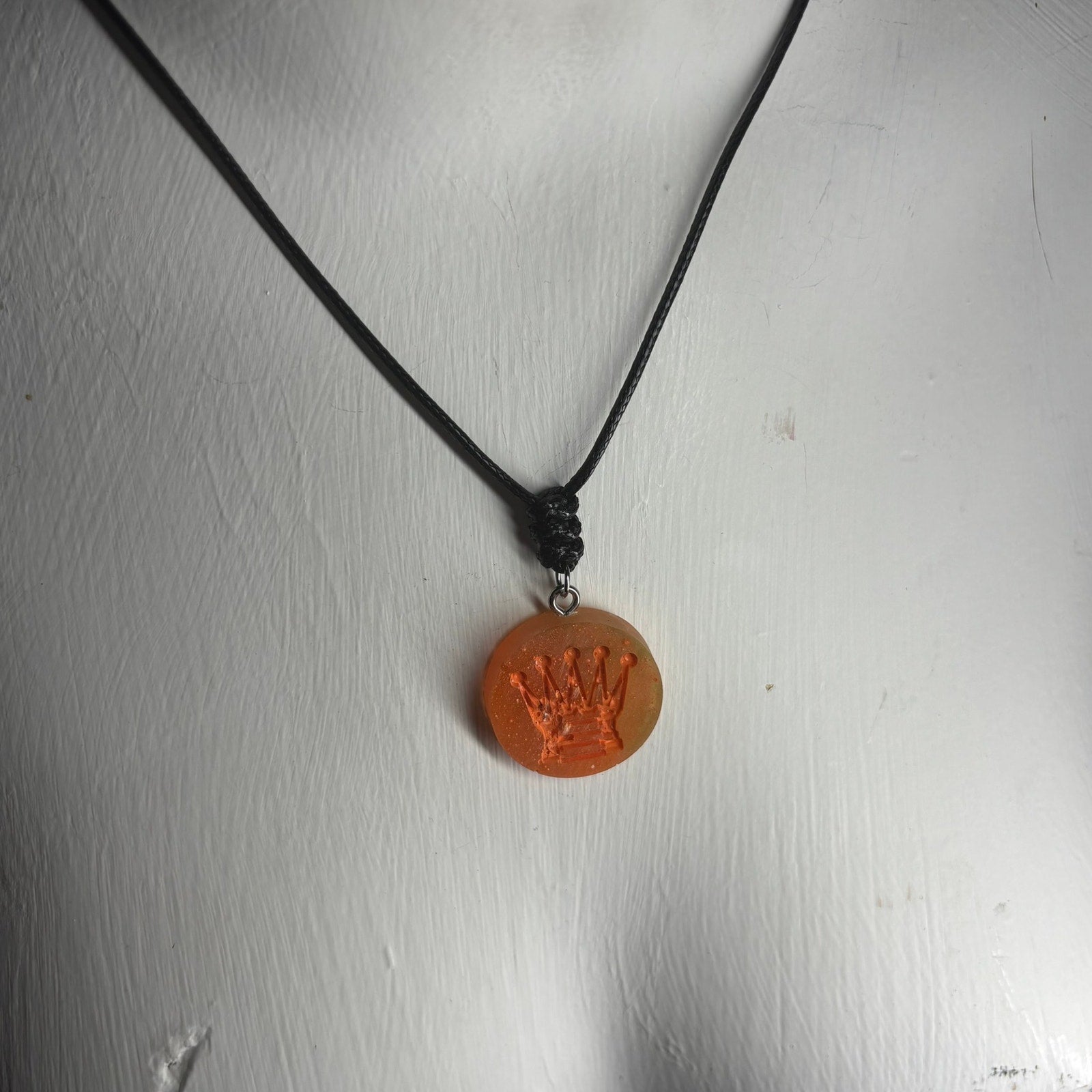 Sunset Orange Queen - Handmade Resin Chess Necklace