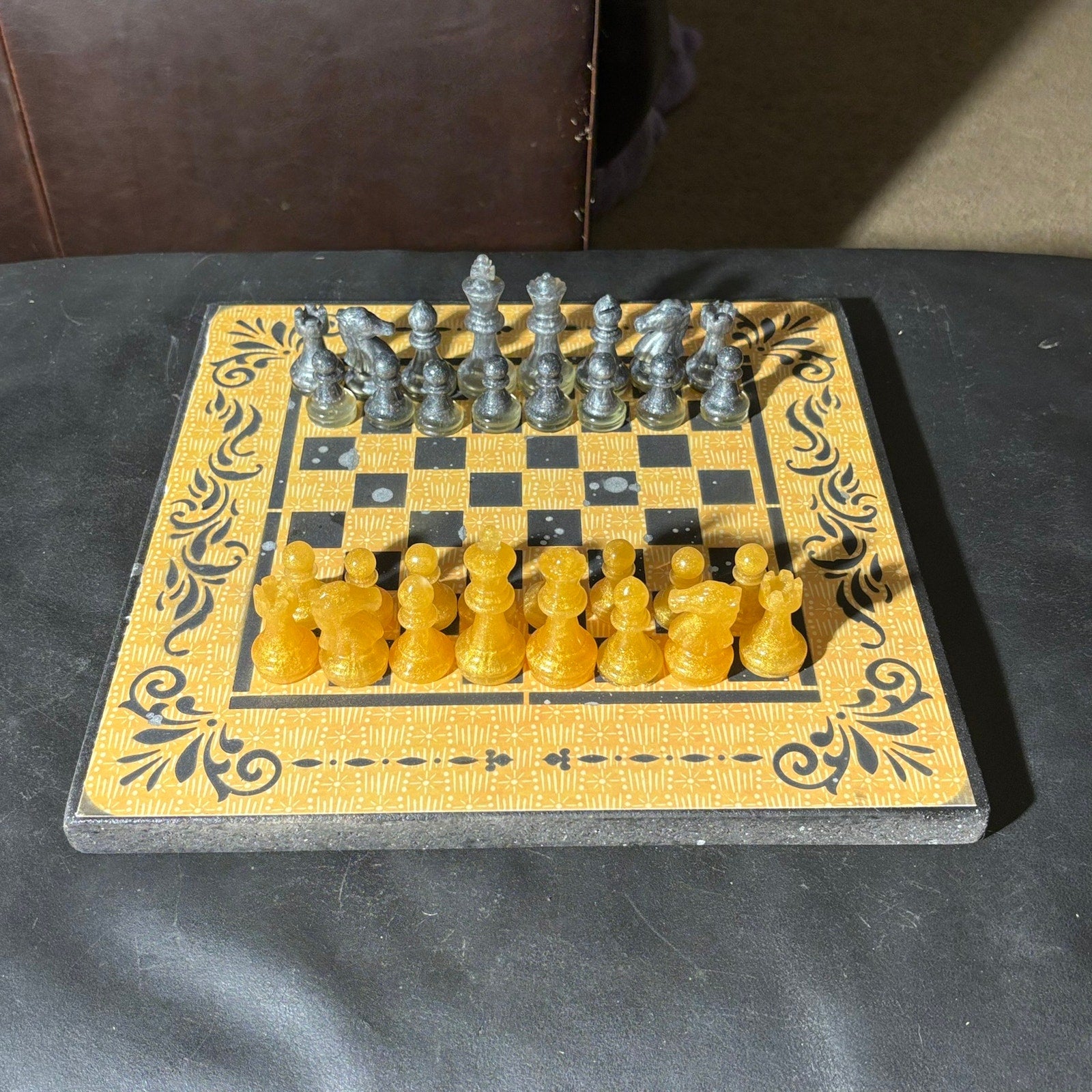*** PLEASE READ: The resin pieces that have clear transparent parts will slowly turn royal amber as time goes on (Clear see through resin turn amber with time). Most of the sets are solid or colored so there is no need to expect a change at all, but some have clear transparent bottoms that will turn amber. I write this because some of our chess sets may not sell for a year or two and the photos are taken when the item is listed online. Meaning the photos will have slight difference. Rest assured, the amber is beautiful and vintage!