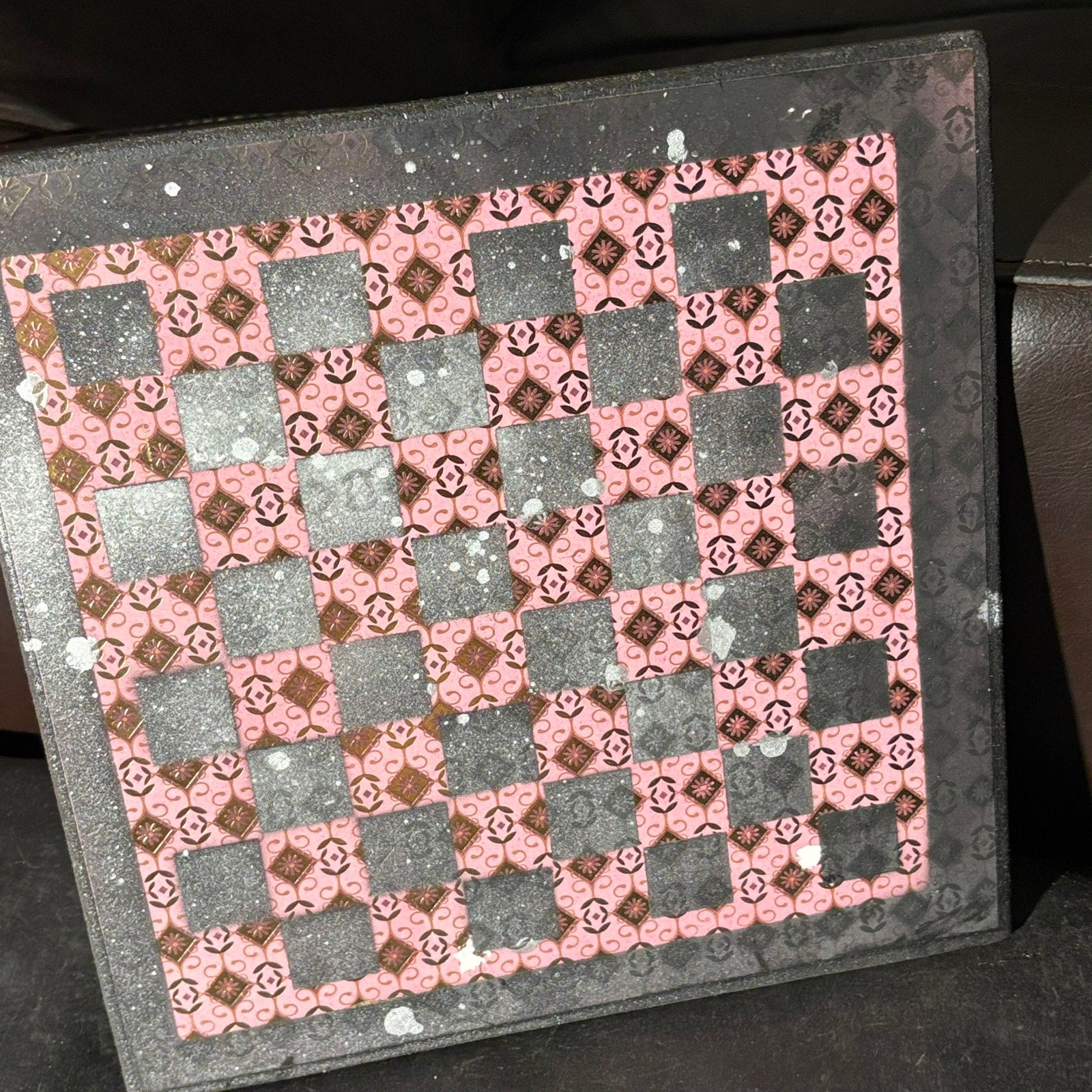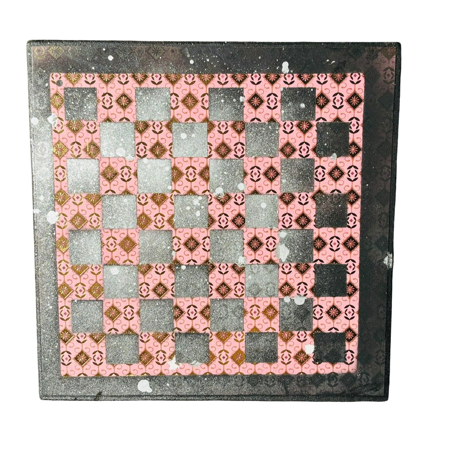 Each board features a layer of beautifully Scrapbook Paper Fused/Glued with particle board to give it a unique pretty pattern. We then paint squares onto the board to make them into fabulous chess boards. Made with a sturdy particle board base and smooth, beveled edges, this board is stunning.