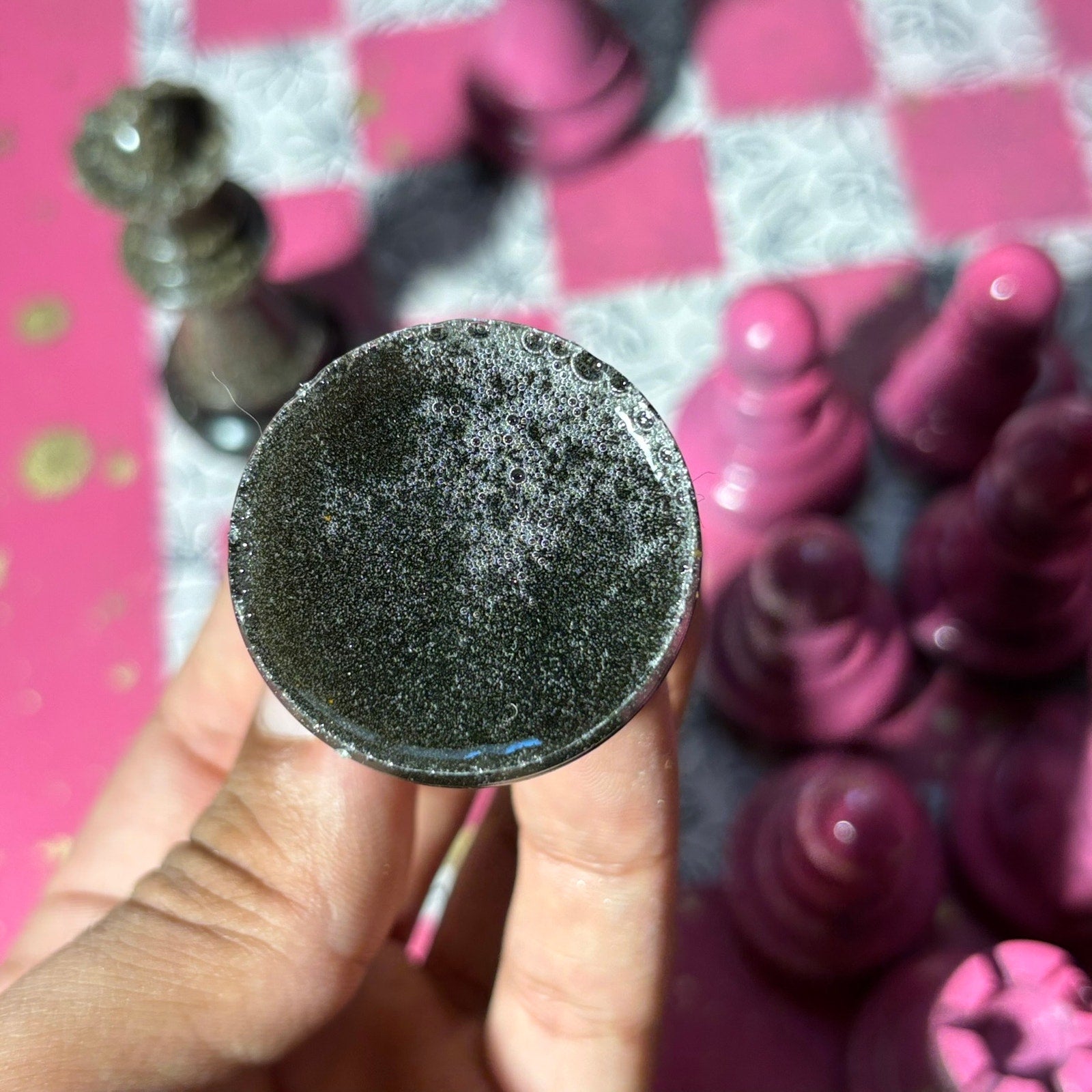 This unique chess set is a one-of-a-kind creation, perfect for chess enthusiasts and collectors! The chess pieces are handmade from resin and mixed with sand rock, giving them a substantial and satisfying weight.