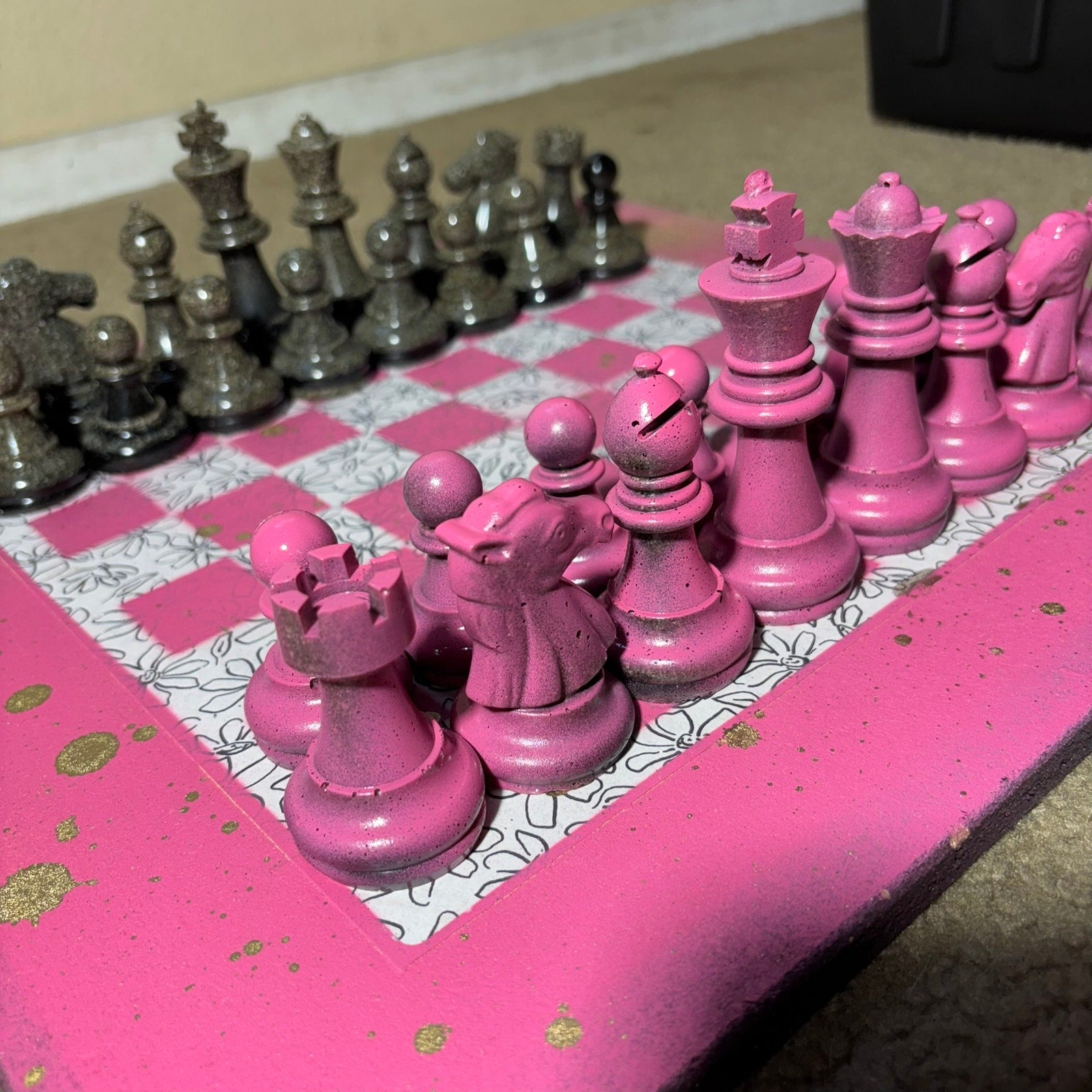 Supreme Pink Flowers - Large Deluxe Chess Set