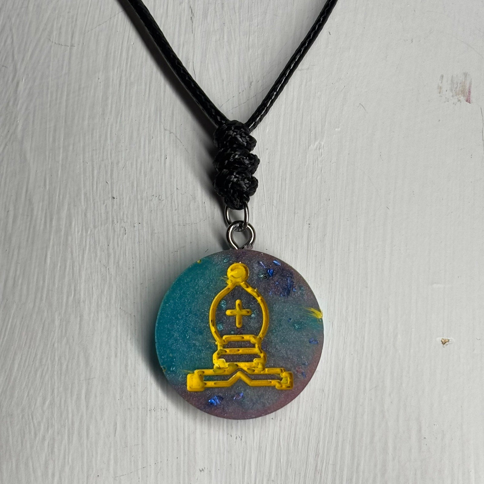 Swirl Color Mix Bishop - Handmade Resin Chess Necklace - Flat Edition