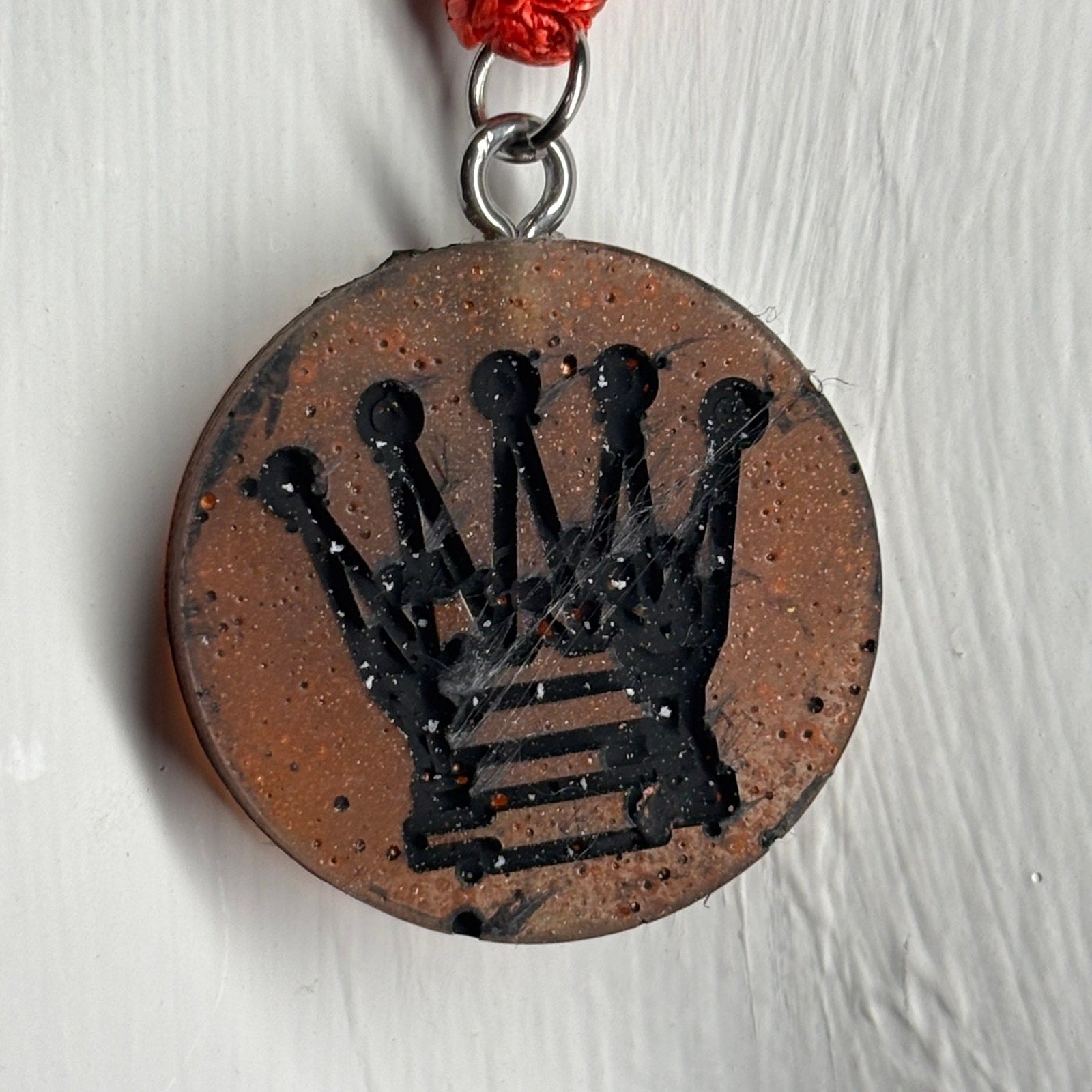 Tattered Orange Queen - Handmade Resin Chess Necklace