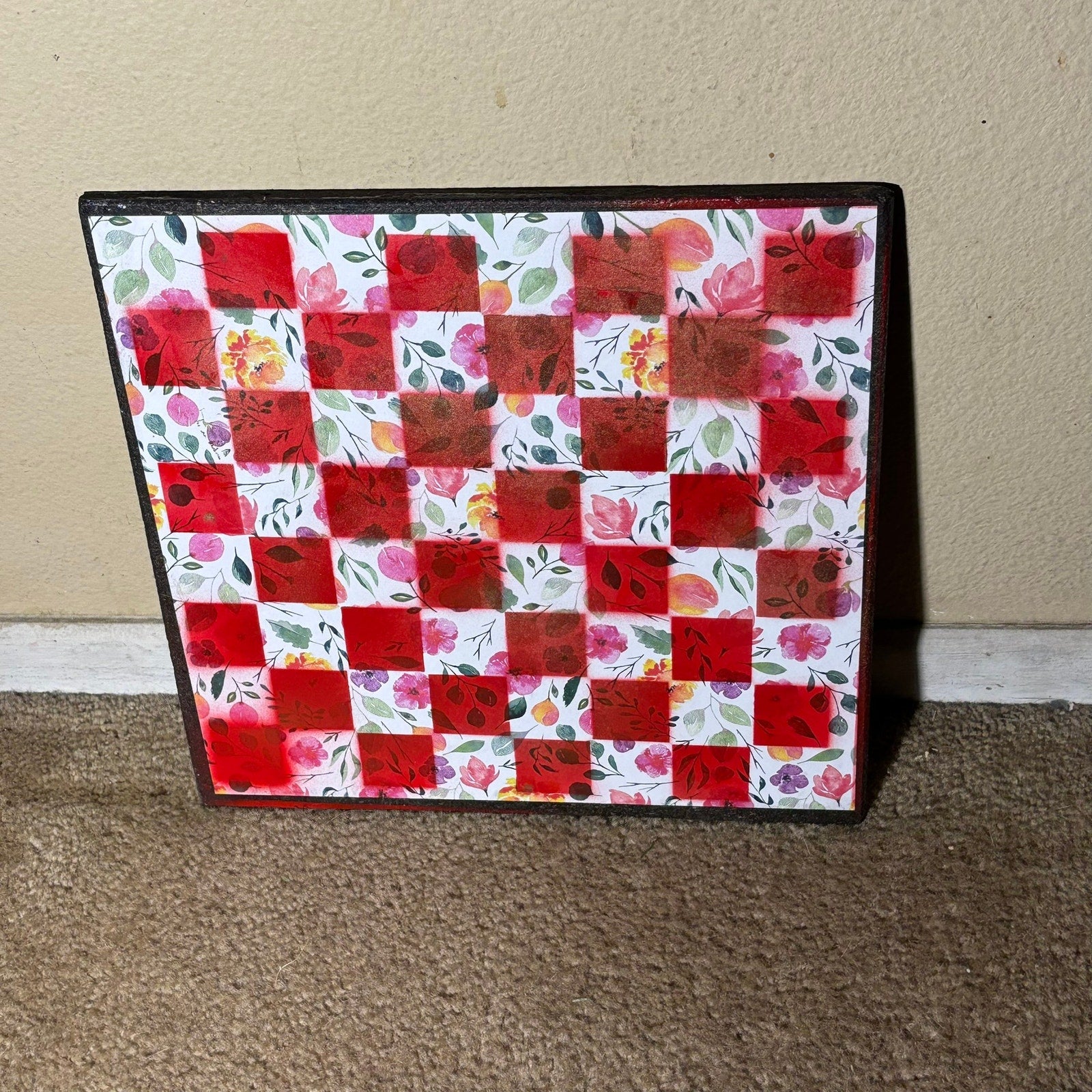 Each board features a layer of beautifully Scrapbook Paper Fused/Glued with particle board to give it a unique pretty pattern. We then paint squares onto the board to make them into fabulous chess boards. Made with a sturdy particle board base and smooth, beveled edges, this board is stunning.