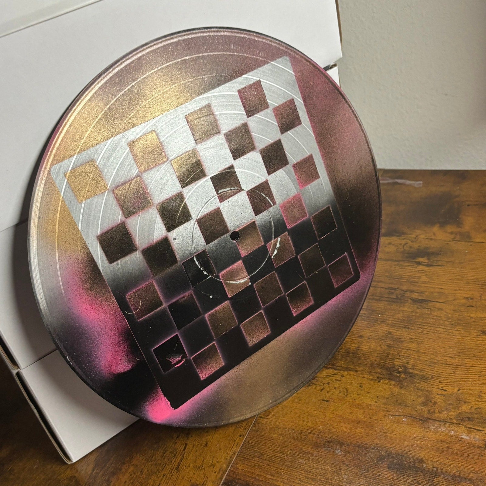 Add a unique and artistic touch to your game nights with these hand-painted vinyl record chess boards! Each board is a one-of-a-kind creation, featuring its own distinct color palette and design.