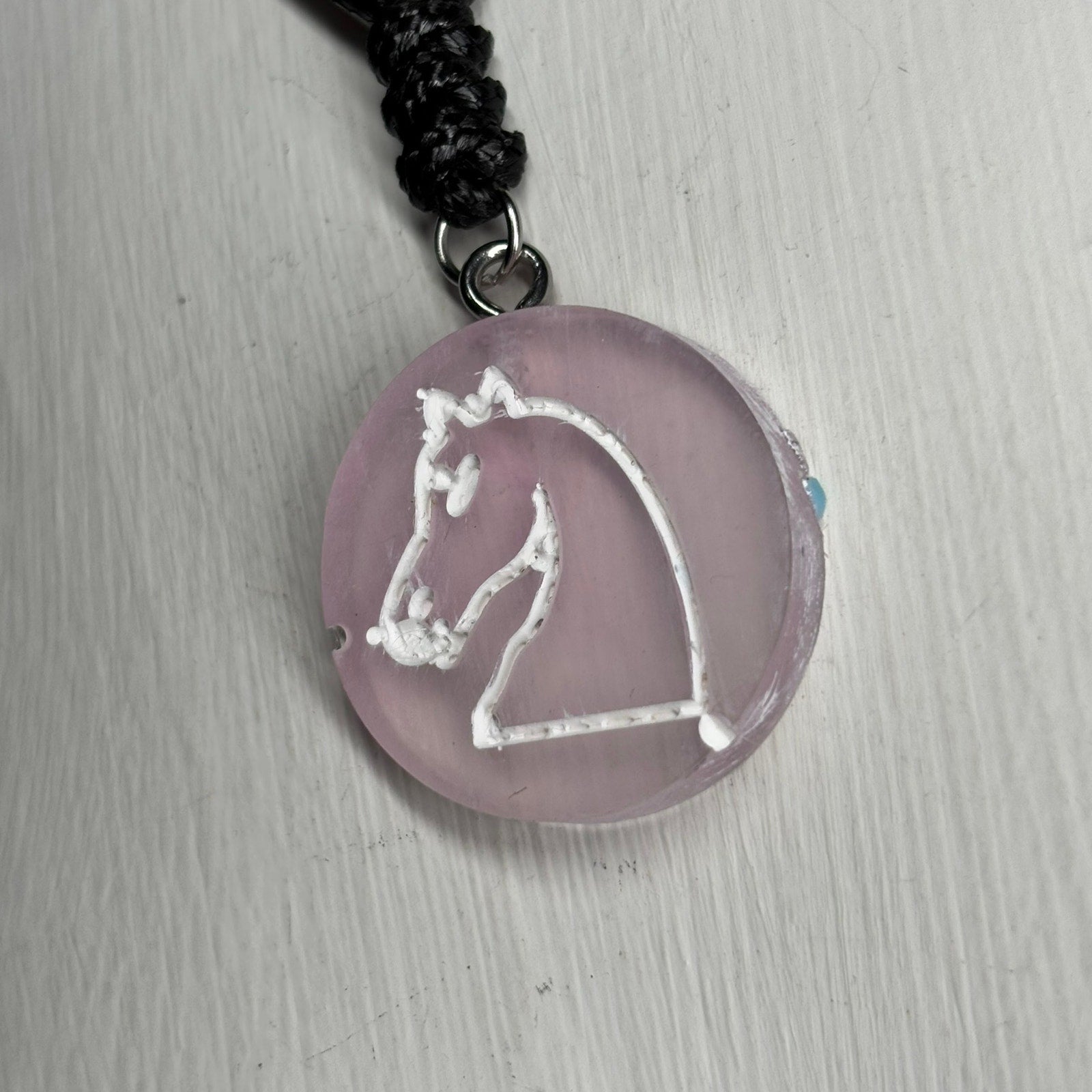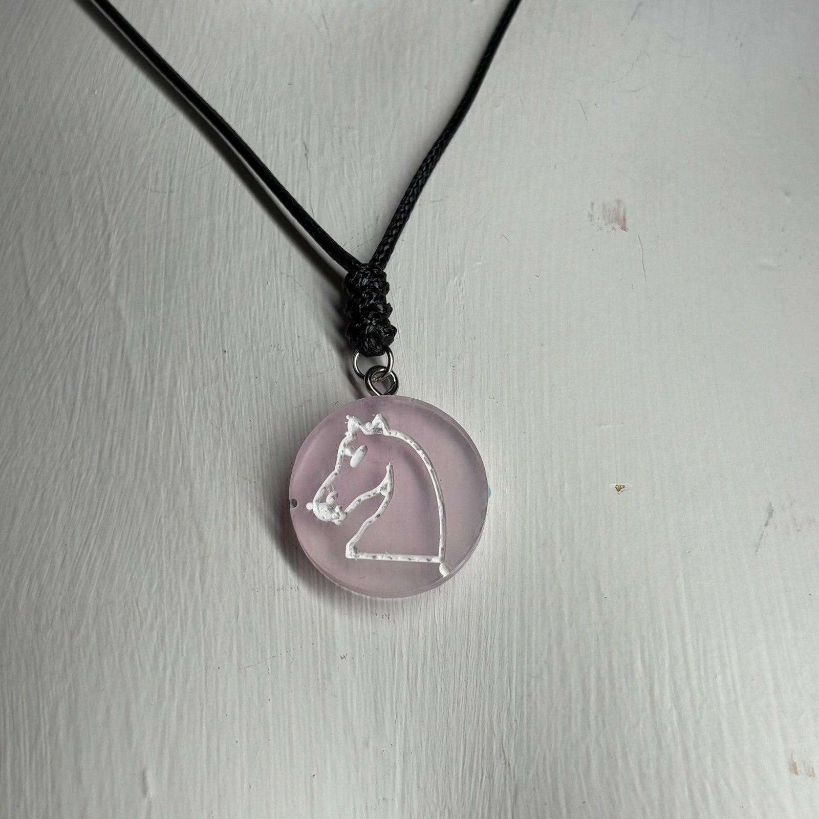 Translucent Pink Knight - Handmade Resin Chess Necklace