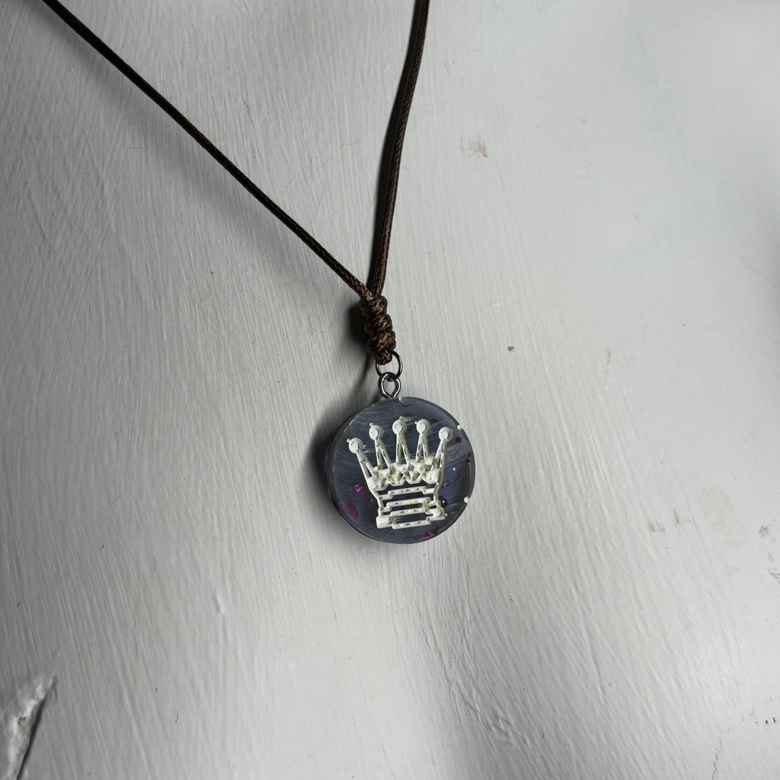 Translucent Purple Queen - Handmade Resin Chess Necklace