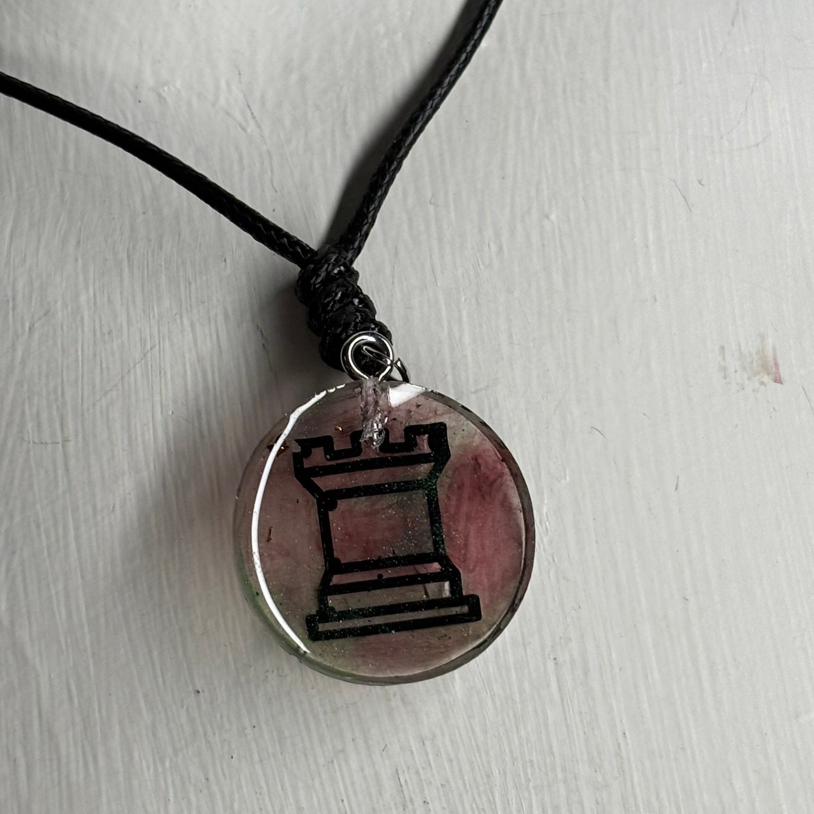 Add a touch of strategy and style to your look with this unique, handcrafted chess pendant necklace! Each necklace features a resin chess piece pendant, lovingly handmade to ensure quality and individuality.