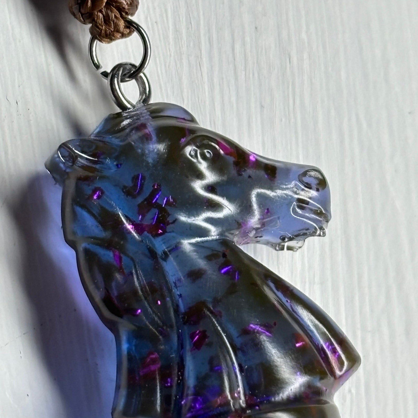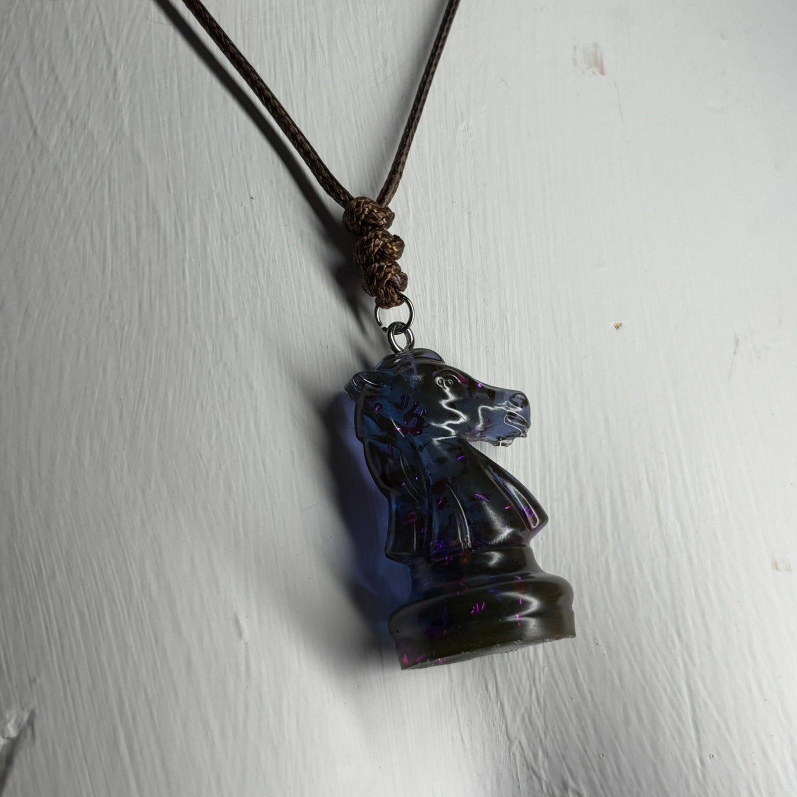 Transparent Blue Knight - Handmade Resin Chess Necklace