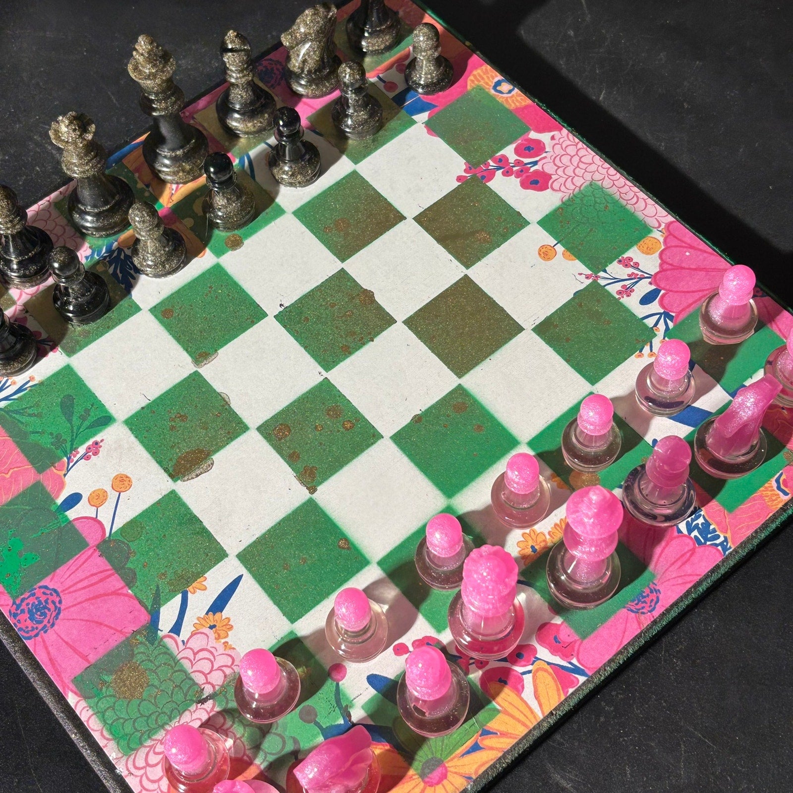 Vibrant Pink & Green - Scrapbook Chess Set