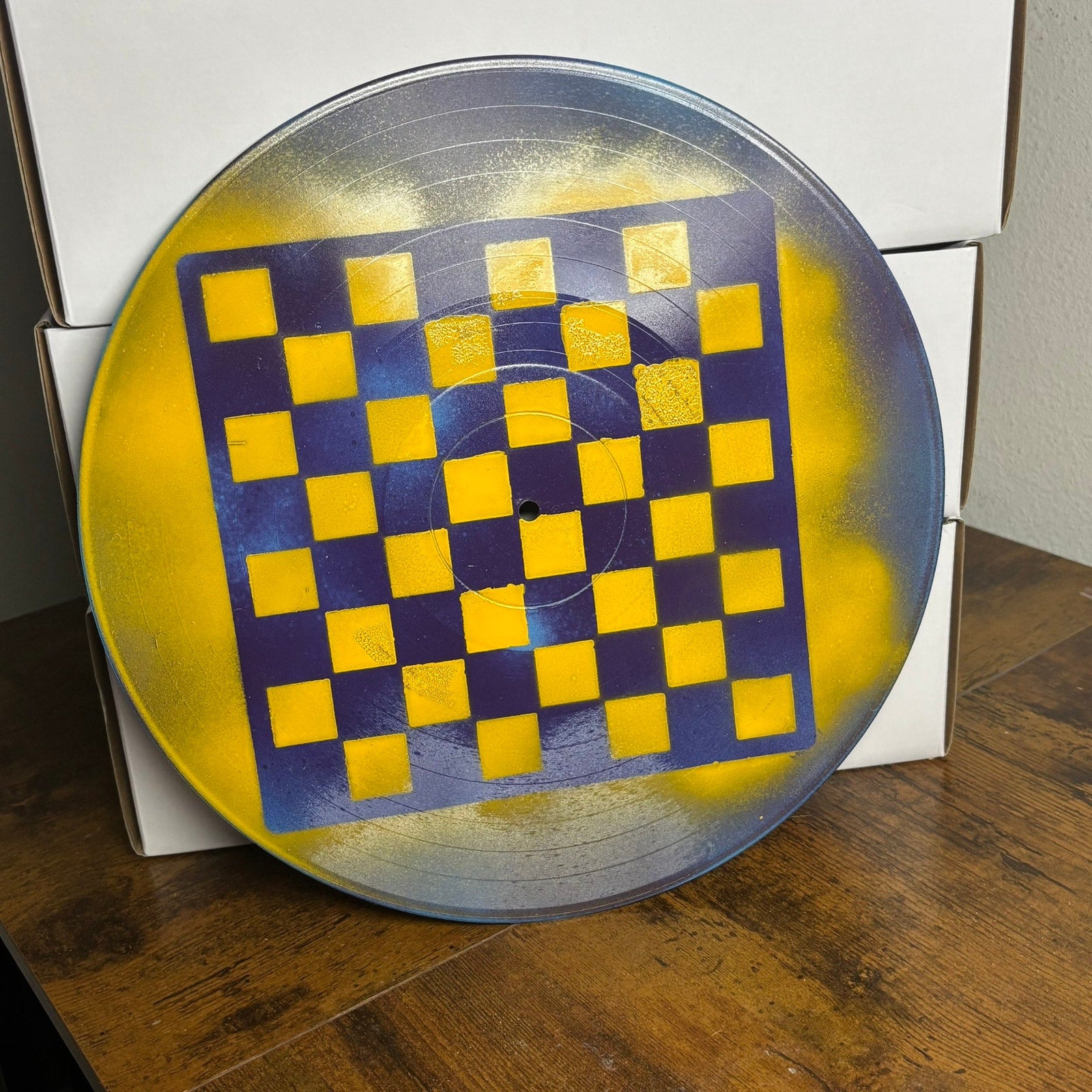 Add a unique and artistic touch to your game nights with these hand-painted vinyl record chess boards! Each board is a one-of-a-kind creation, featuring its own distinct color palette and design.