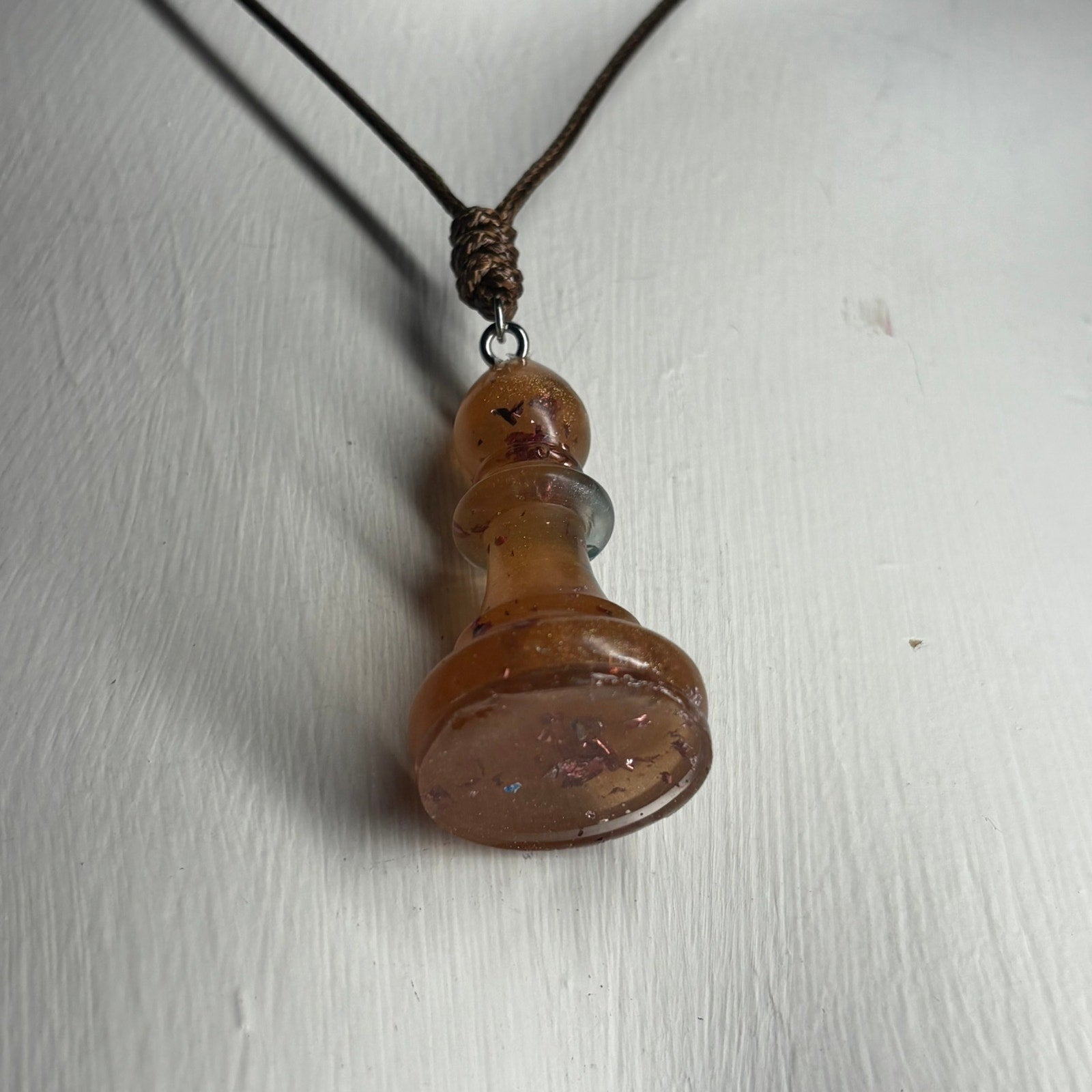 Add a touch of strategy and style to your look with this unique, handcrafted chess pendant necklace! Each necklace features a resin chess piece pendant, lovingly handmade to ensure quality and individuality.