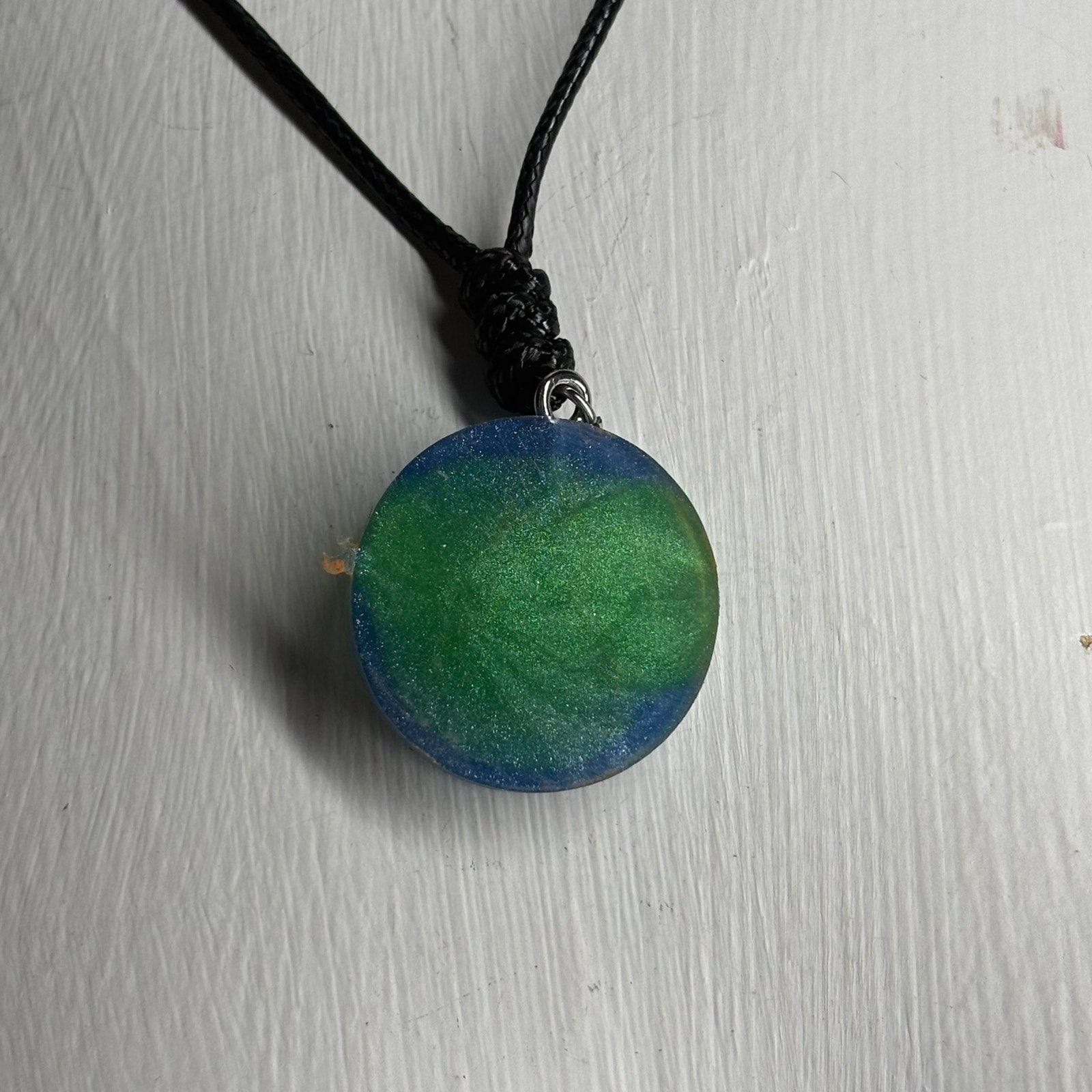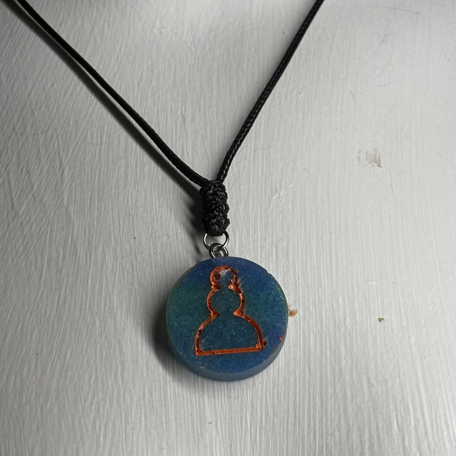 Vintage Blue & Orange Pawn - Handmade Resin Chess Necklace