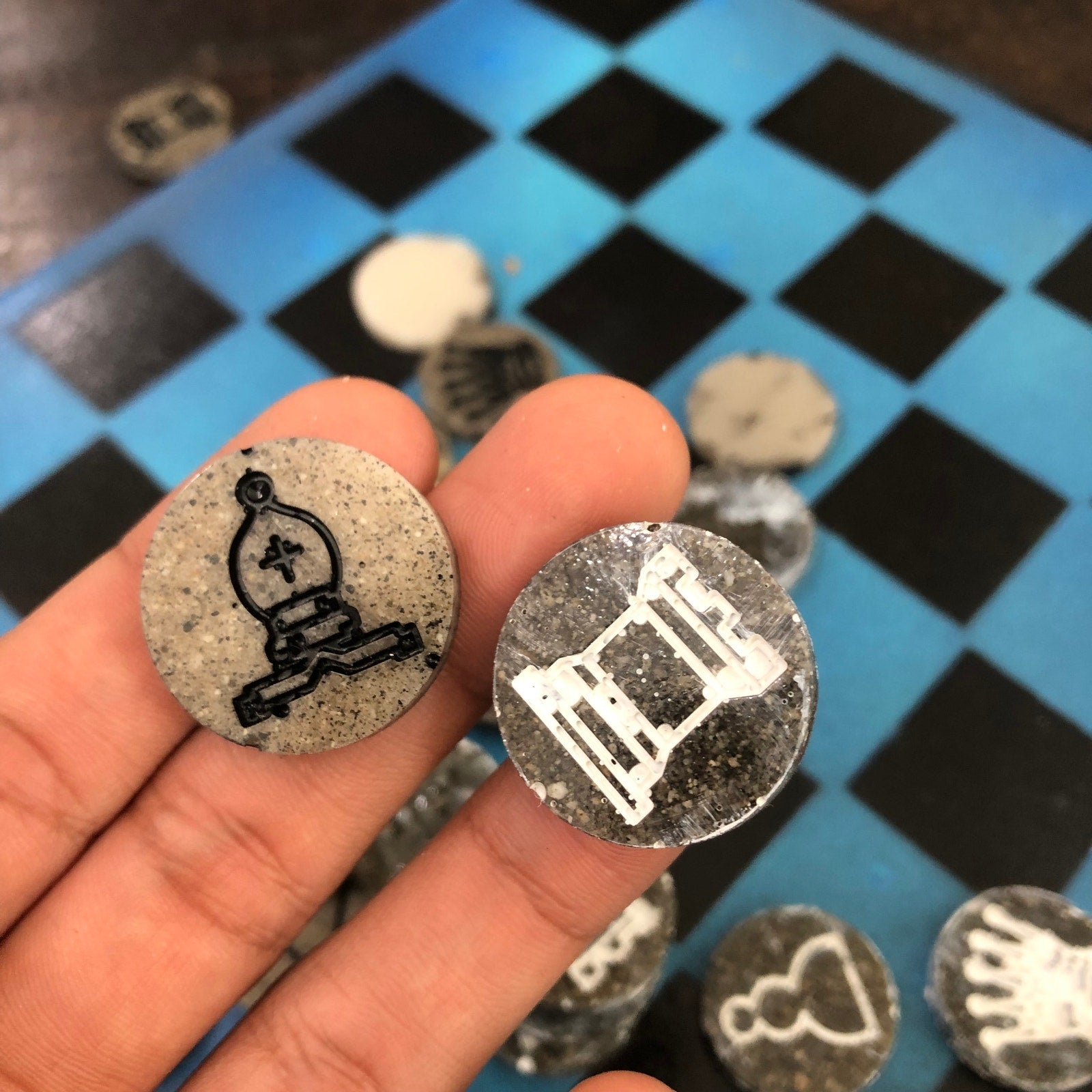Introducing our exclusive Handcrafted Hardboard Chess Set, meticulously designed with precision and care. Measuring 12 inches by 12 inches, this chess set features a beautifully painted hardwood board that doubles as a work of art. Each set is a unique, one-of-a-kind creation, crafted by hand to ensure that no two sets are alike. Elevate your gaming experience with this exceptional chess set that combines vibrant design with the touch of artisan craftsmanship.