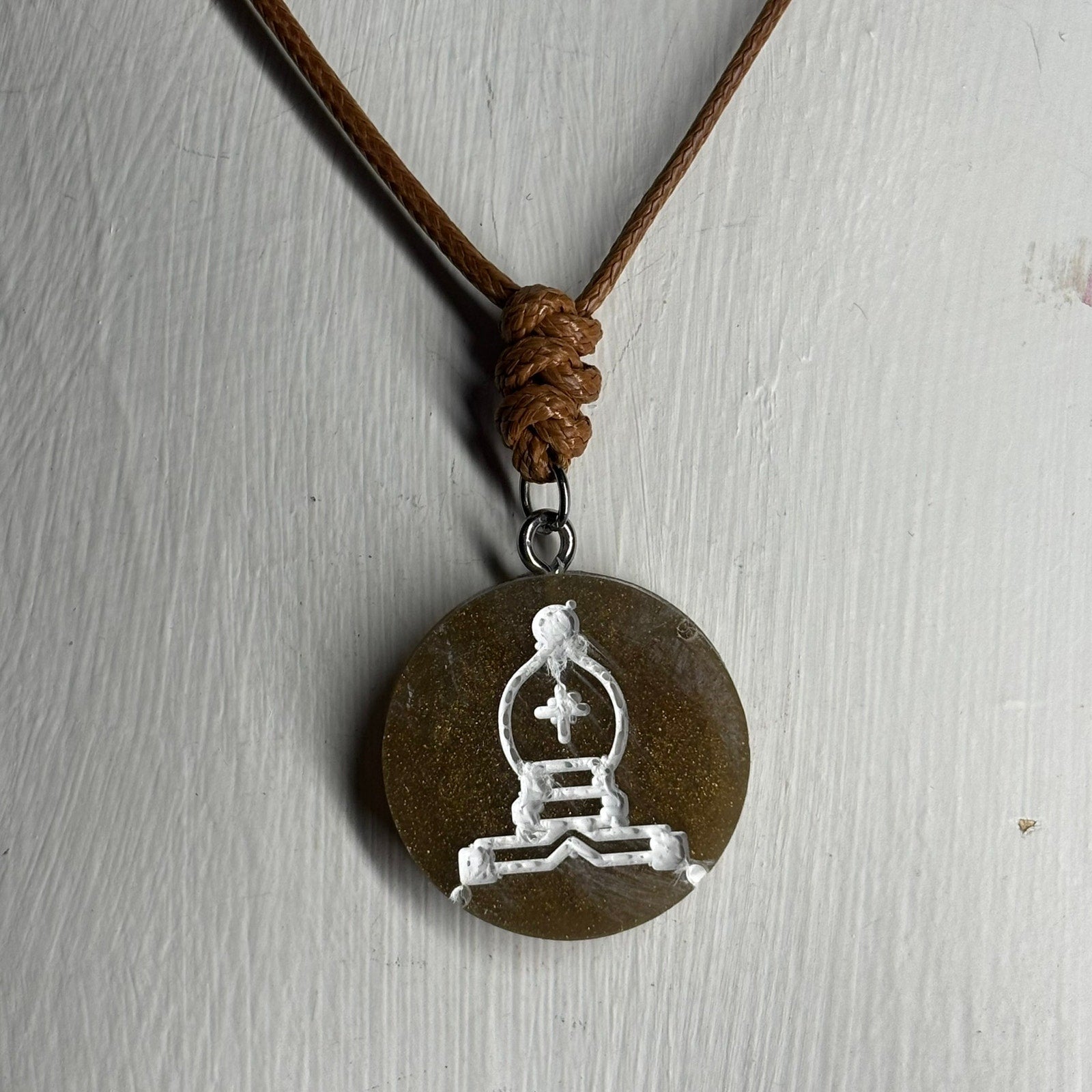 Vintage Brown Bishop - Handmade Resin Chess Necklace