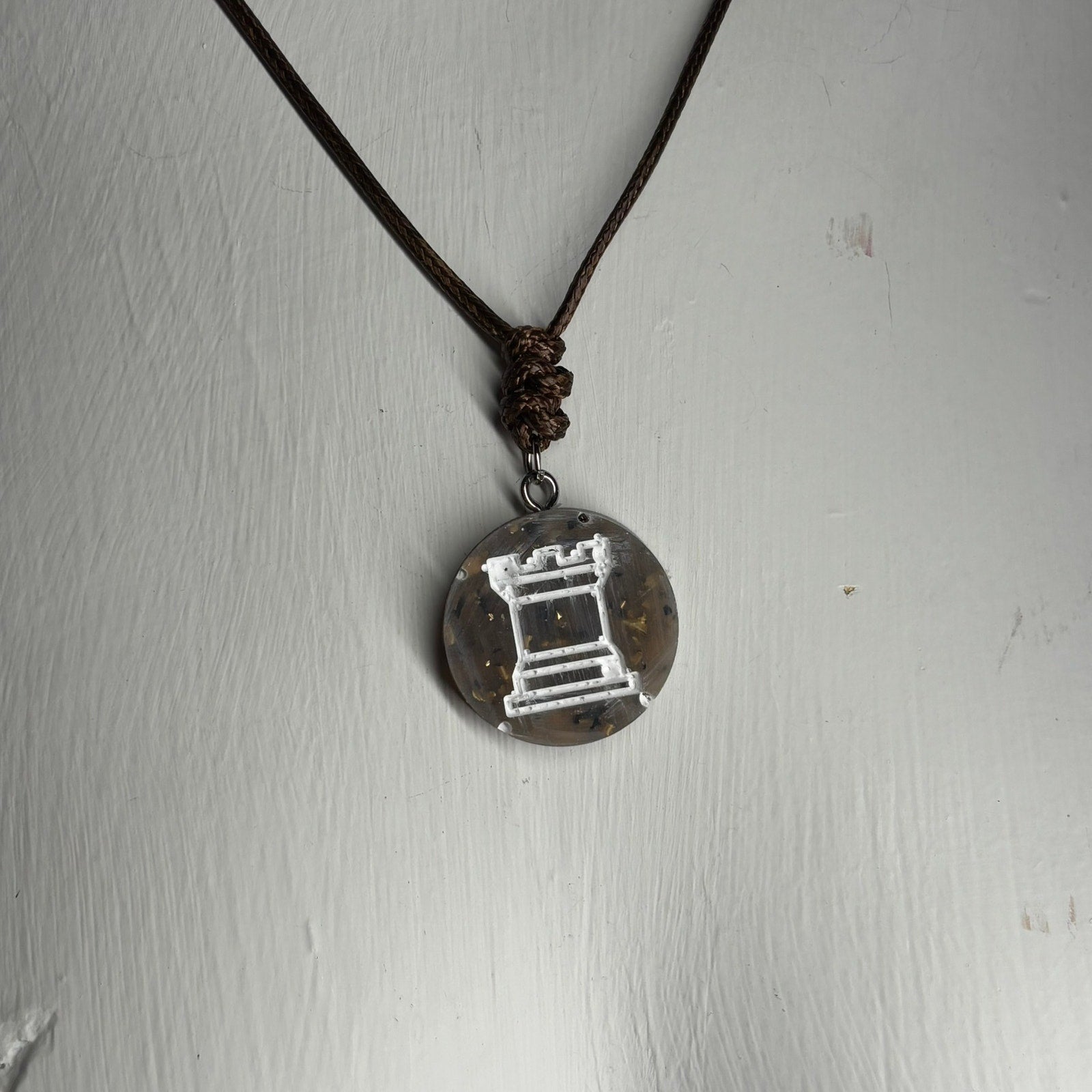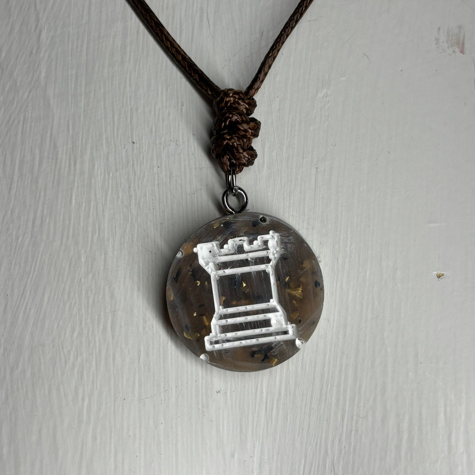 Vintage Brown Rook - Handmade Resin Chess Necklace