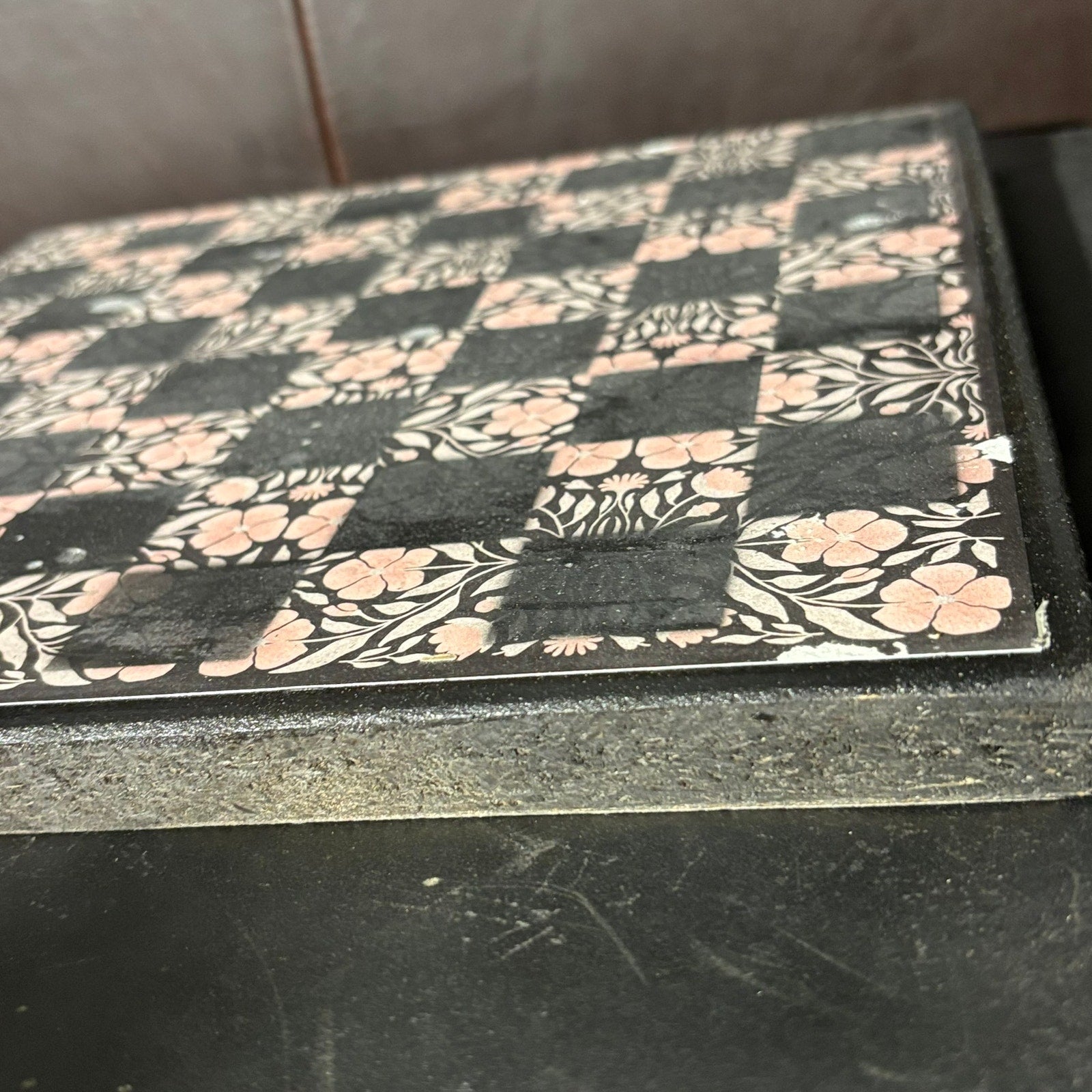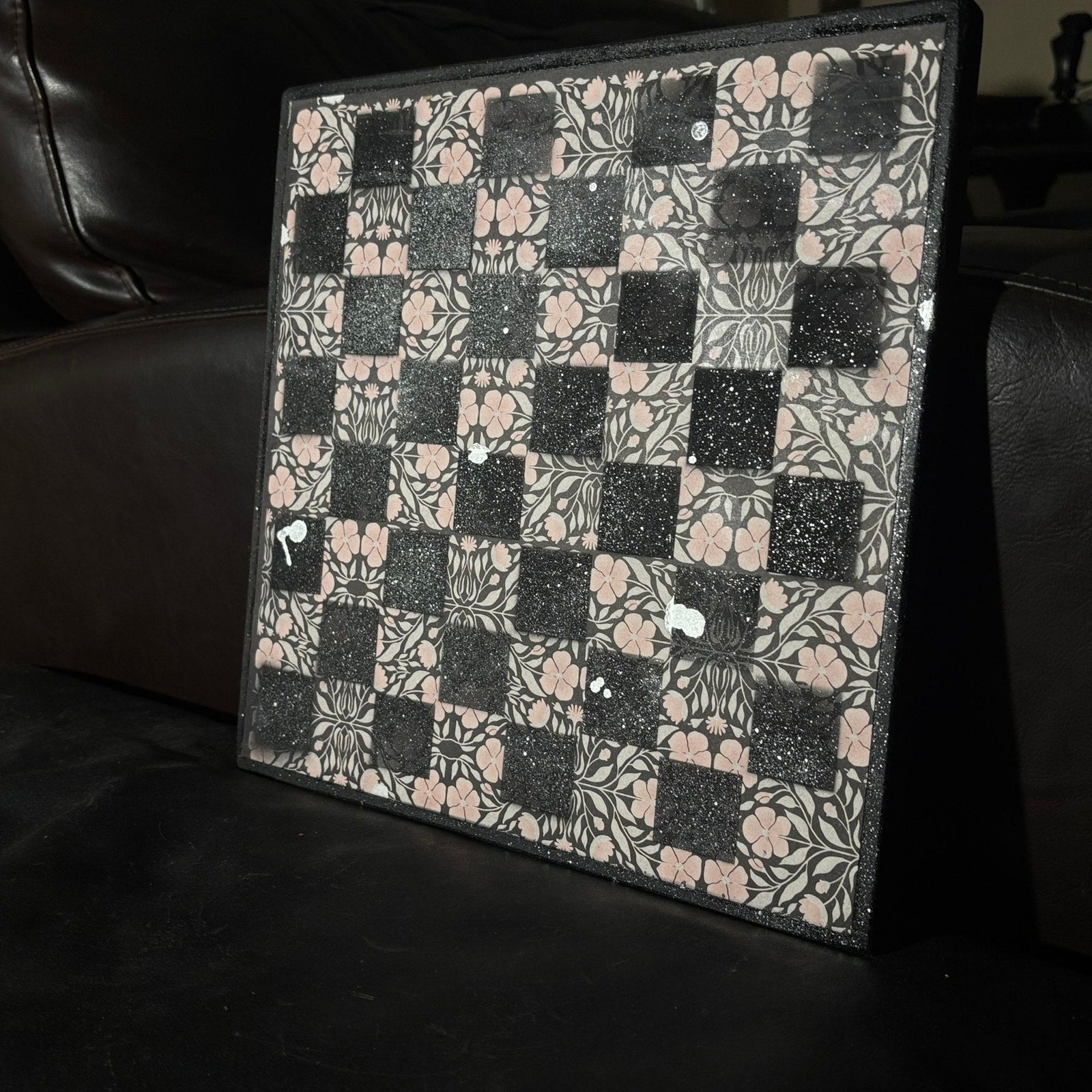 Each board features a layer of beautifully Scrapbook Paper Fused/Glued with particle board to give it a unique pretty pattern. We then paint squares onto the board to make them into fabulous chess boards. Made with a sturdy particle board base and smooth, beveled edges, this board is stunning.