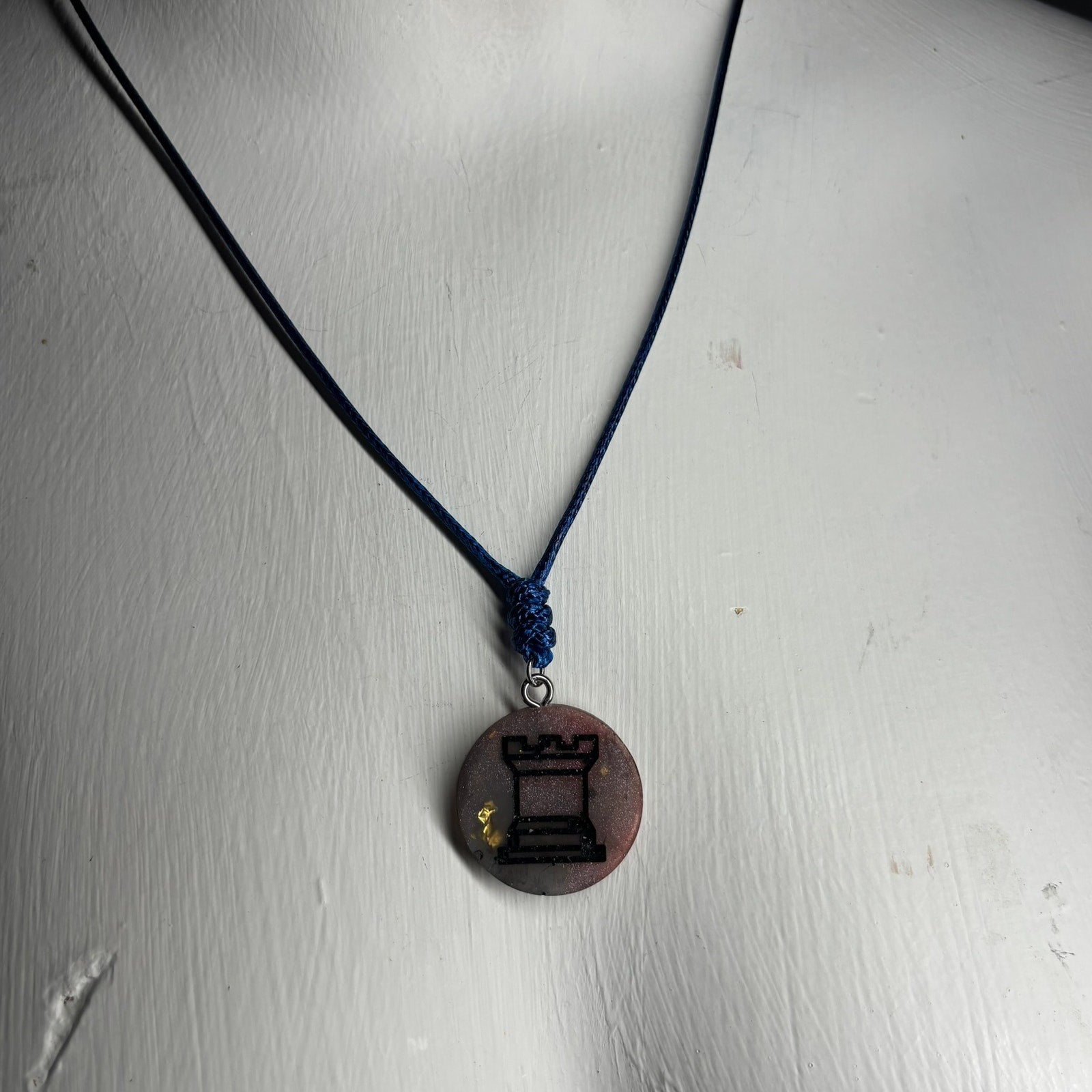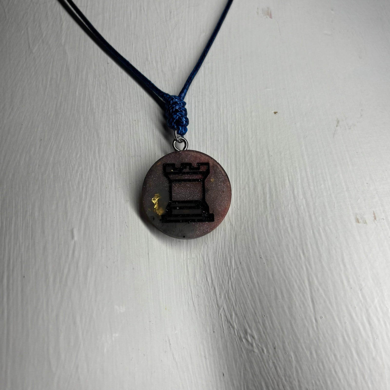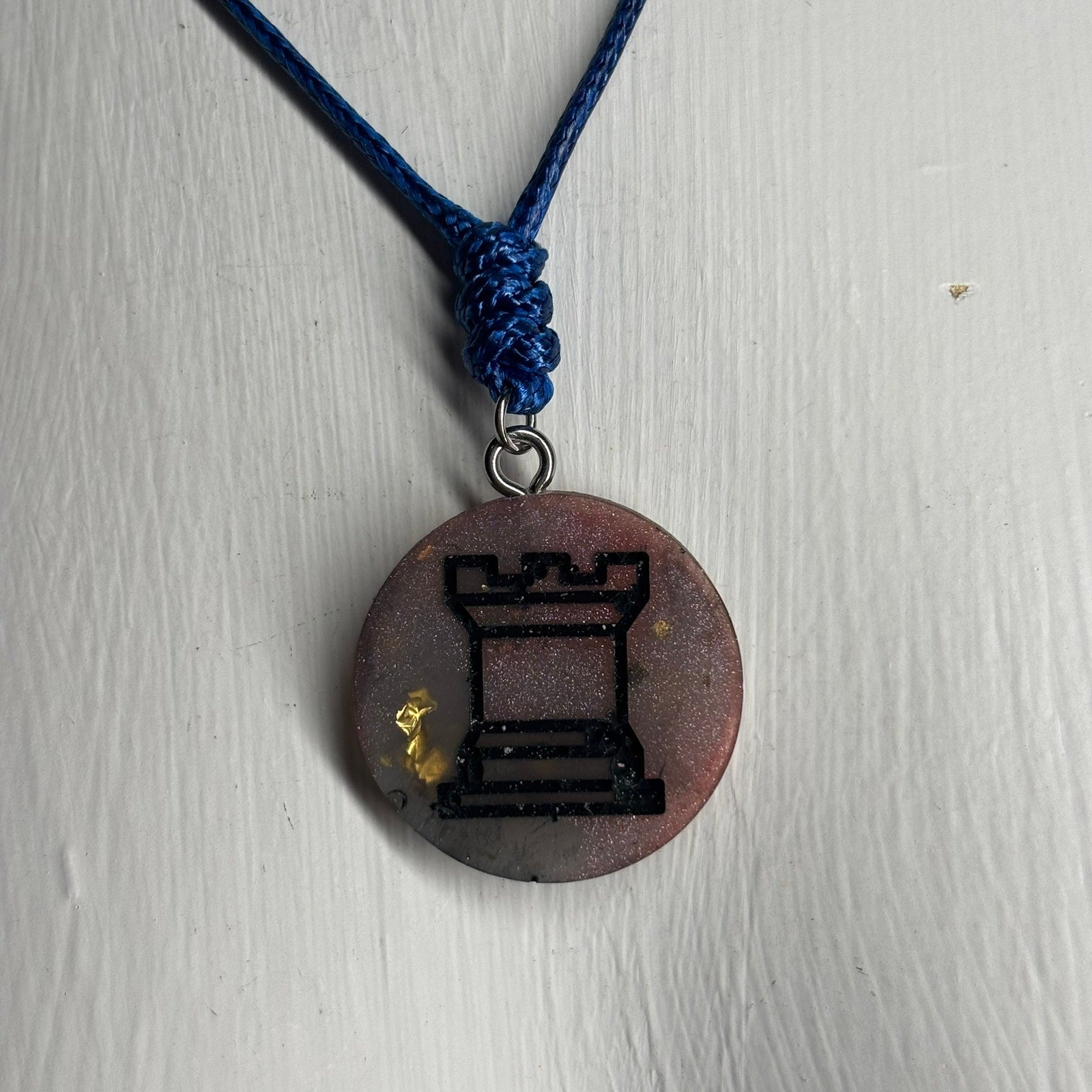 Vintage Dark Rook - Handmade Resin Chess Necklace