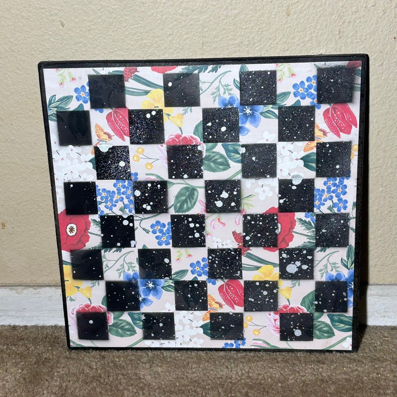 Each board features a layer of beautifully Scrapbook Paper Fused/Glued with particle board to give it a unique pretty pattern. We then paint squares onto the board to make them into fabulous chess boards. Made with a sturdy particle board base and smooth, beveled edges, this board is stunning.