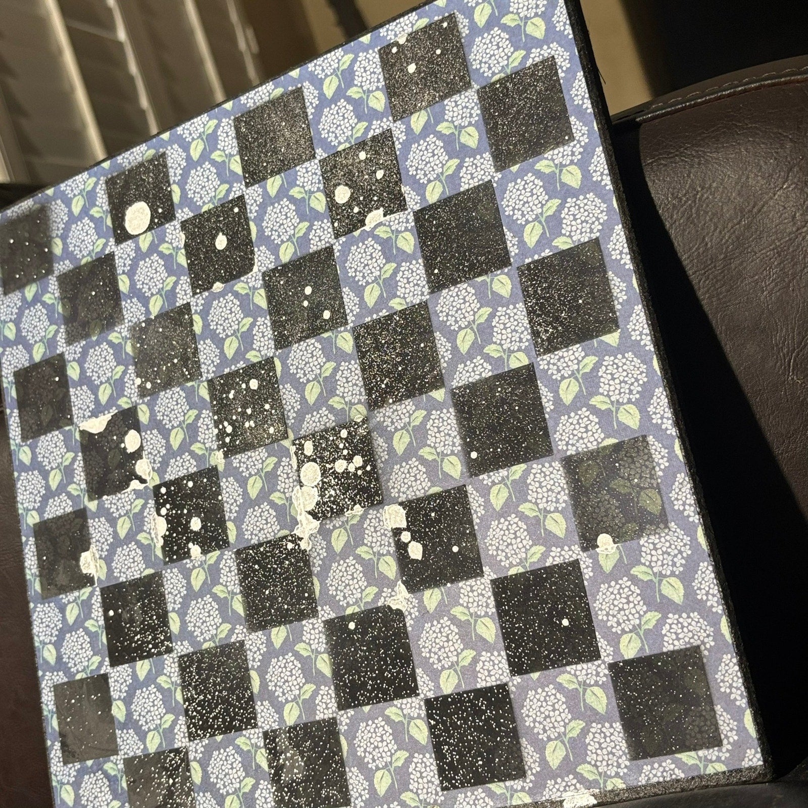 Each board features a layer of beautifully Scrapbook Paper Fused/Glued with particle board to give it a unique pretty pattern. We then paint squares onto the board to make them into fabulous chess boards. Made with a sturdy particle board base and smooth, beveled edges, this board is stunning.