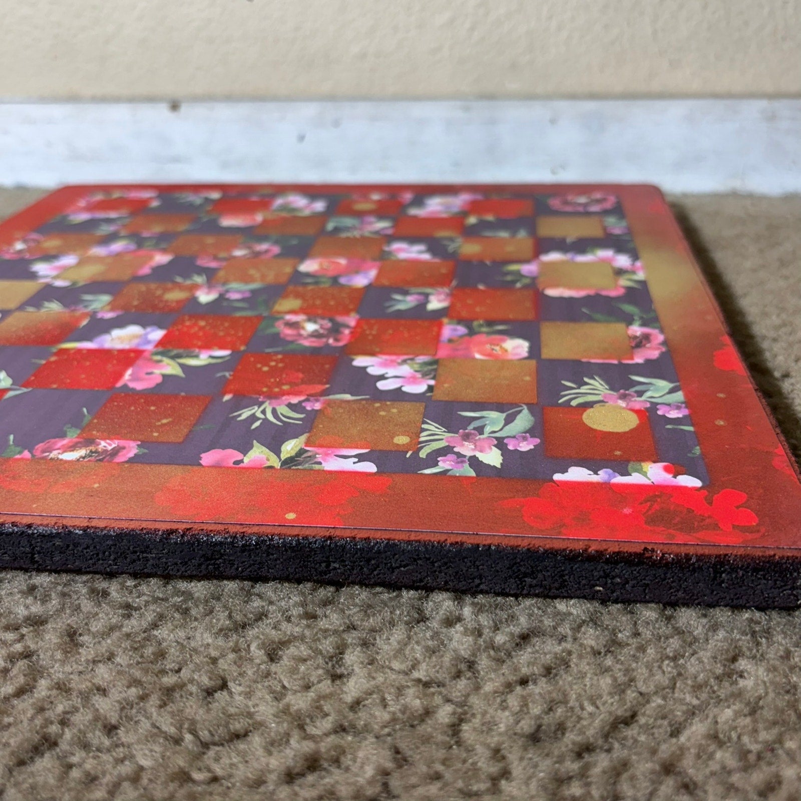 Each board features a layer of beautifully Scrapbook Paper Fused/Glued with particle board to give it a unique pretty pattern. We then paint squares onto the board to make them into fabulous chess boards. Made with a sturdy particle board base and smooth, beveled edges, this board is stunning.