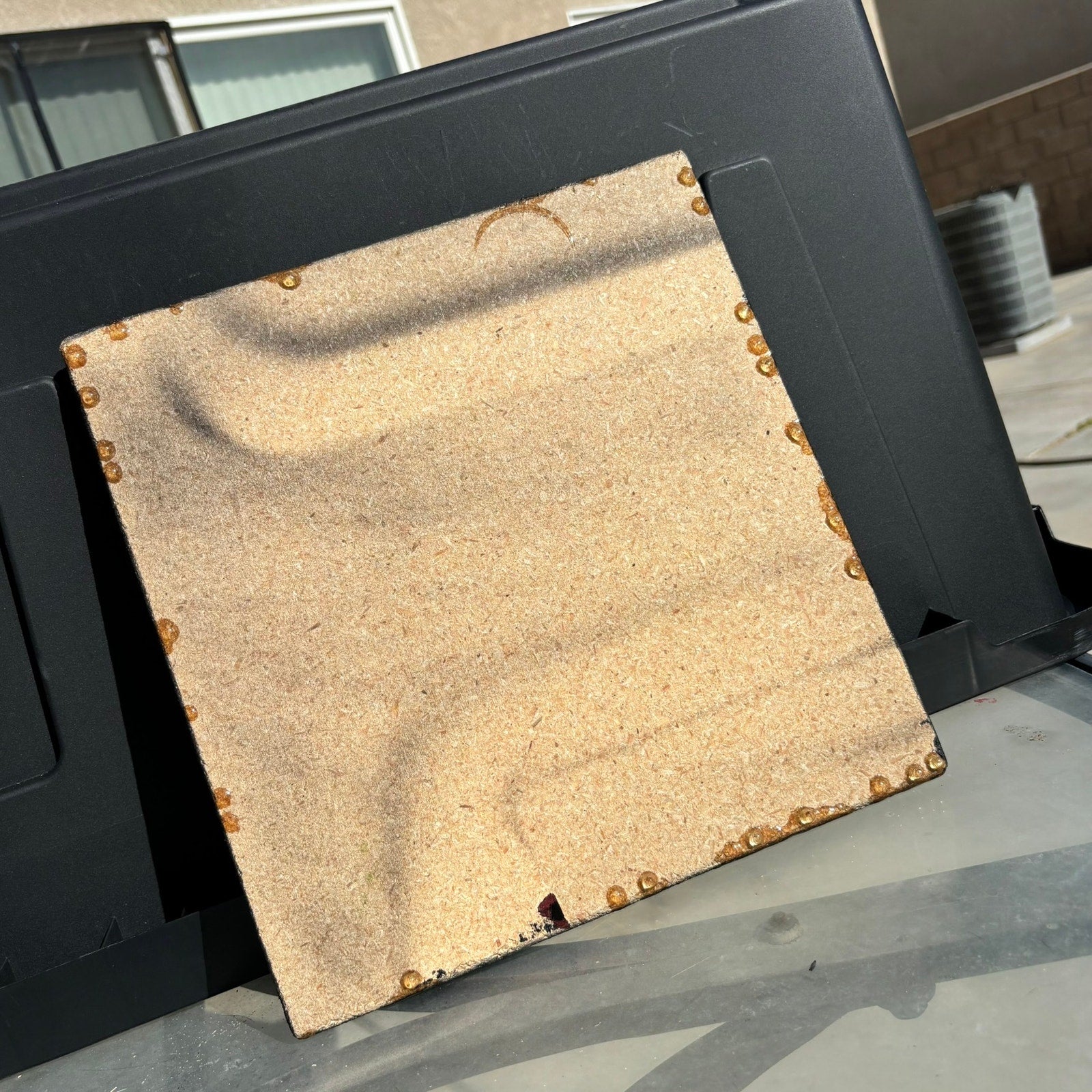 Each board features a layer of beautifully designed hand painted particle board...
