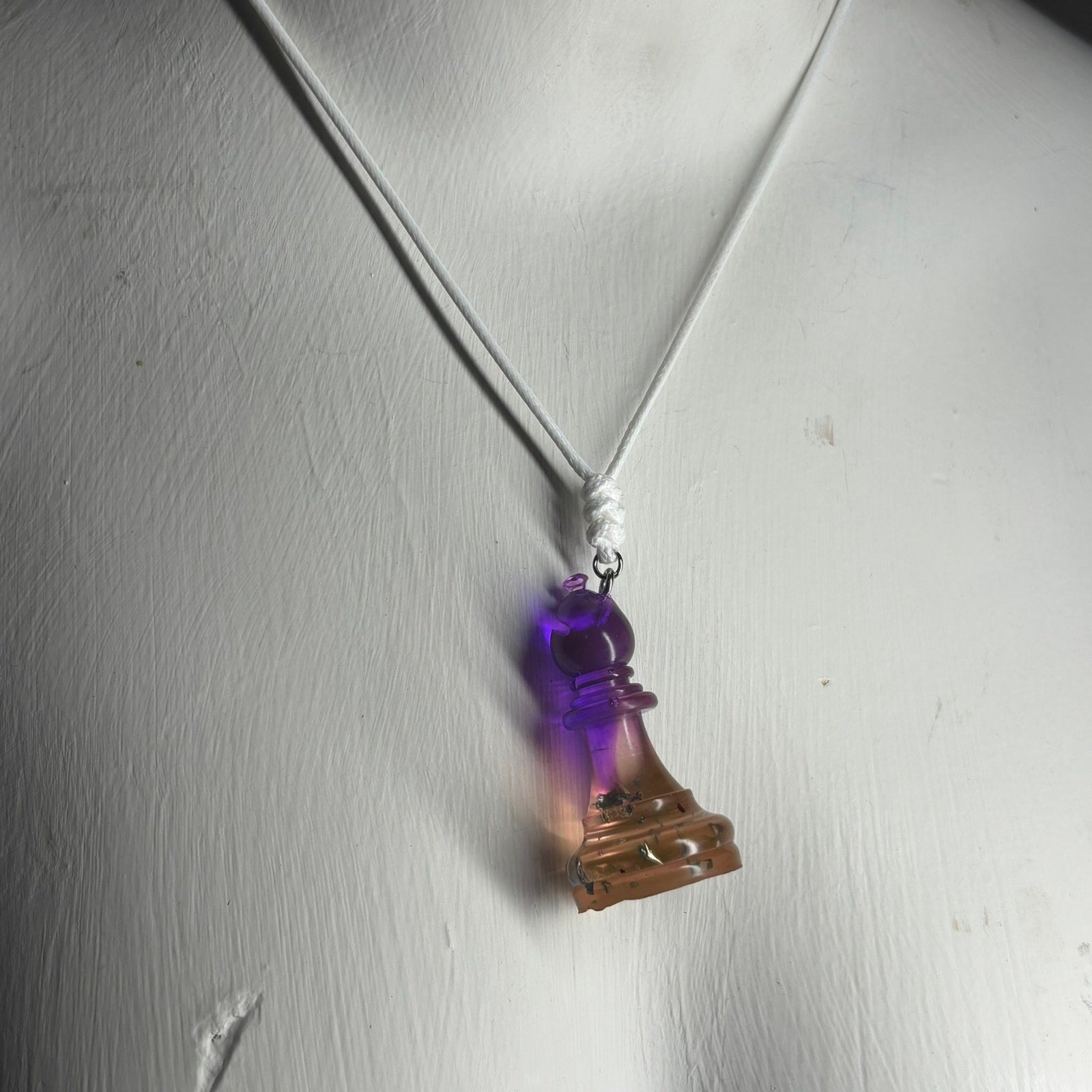 Vintage Void Purple Bishop - Handmade Resin Chess Necklace
