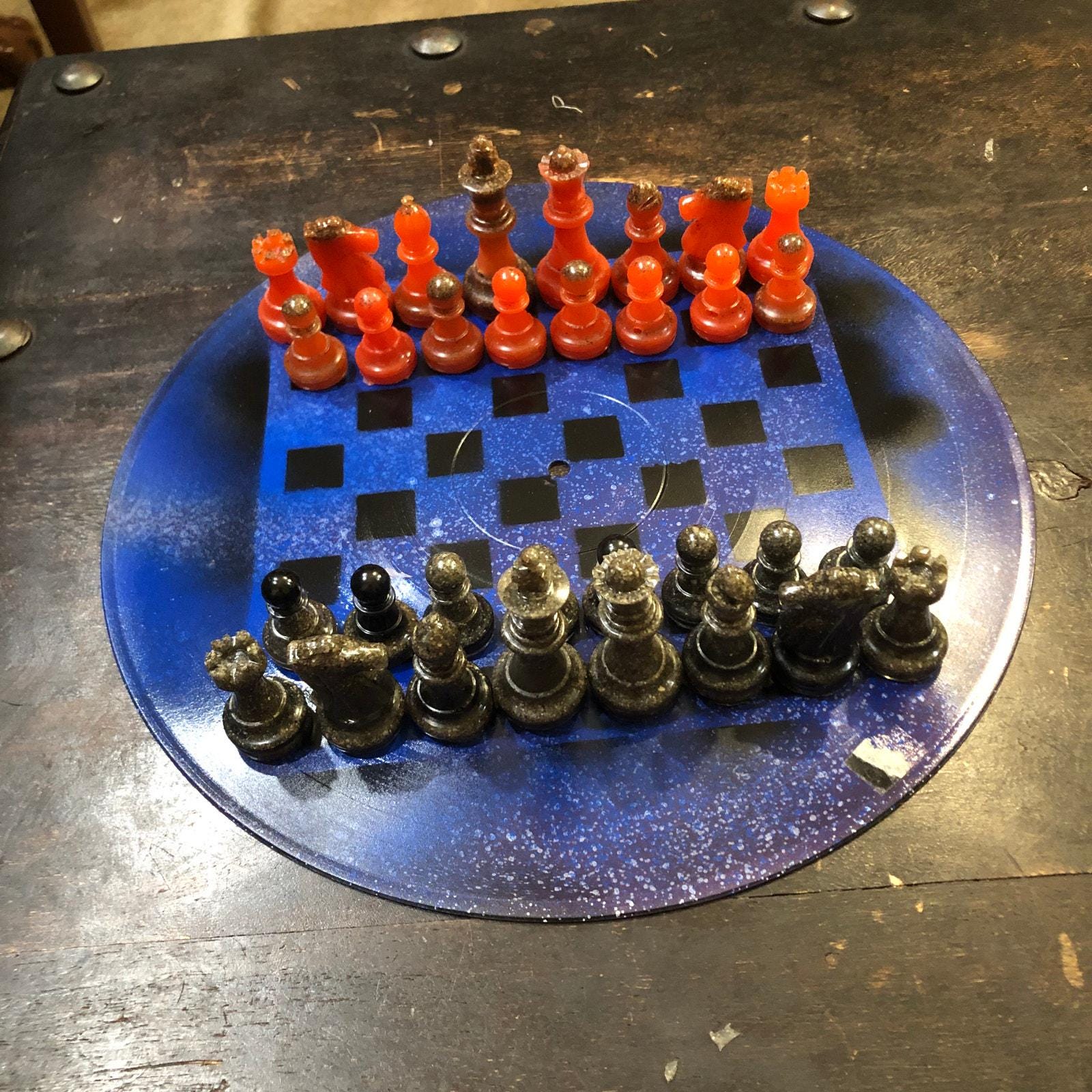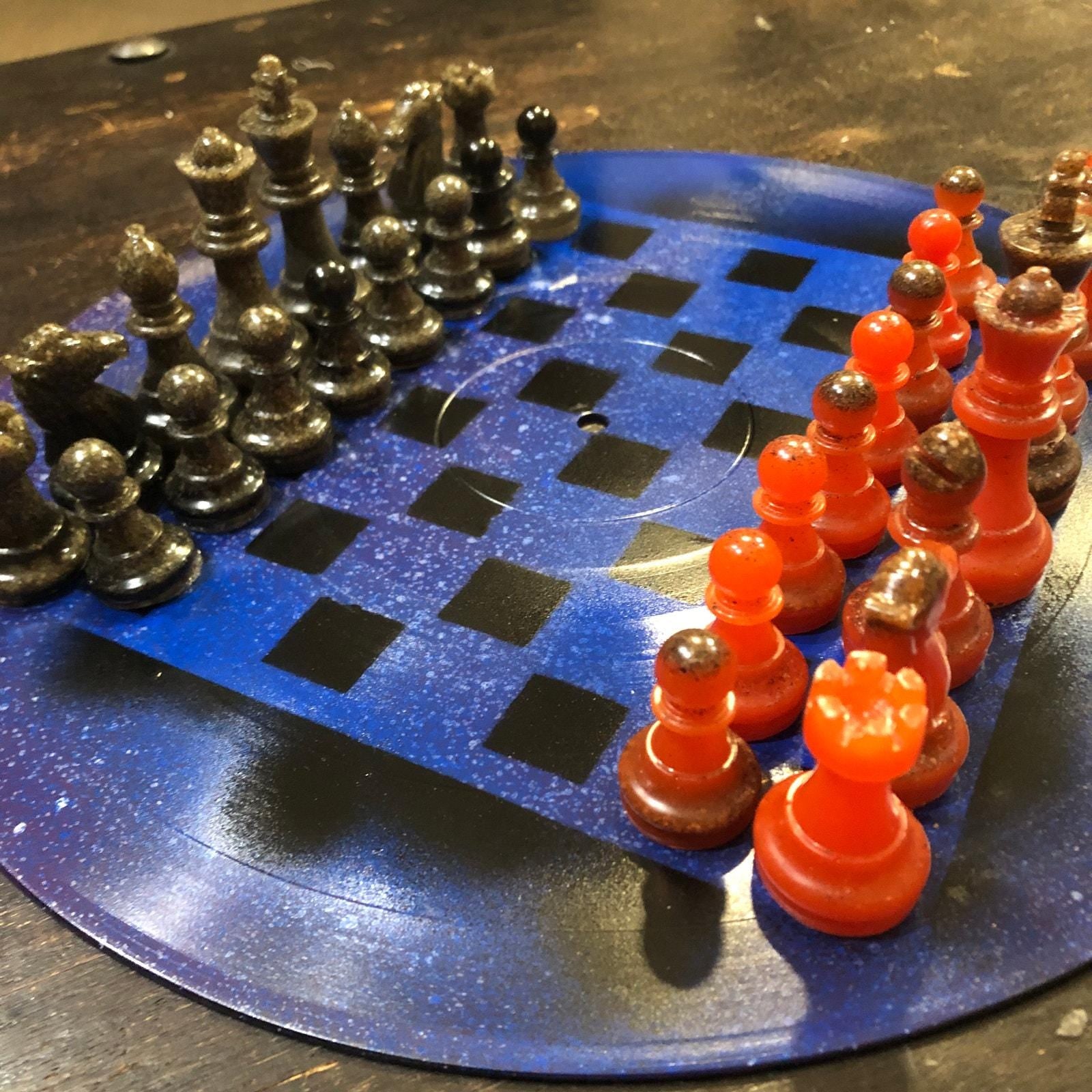 Introducing our unique Vinyl Record Chess Sets. Each set features handcrafted vinyl records transformed into eye-catching chess sets in a variety of vibrant colors. These one-of-a-kind chess sets are not just a game, but a piece of art to elevate your game nights and decor. Embrace the nostalgia of vinyl records with a modern twist in these bespoke, limited edition chess sets.