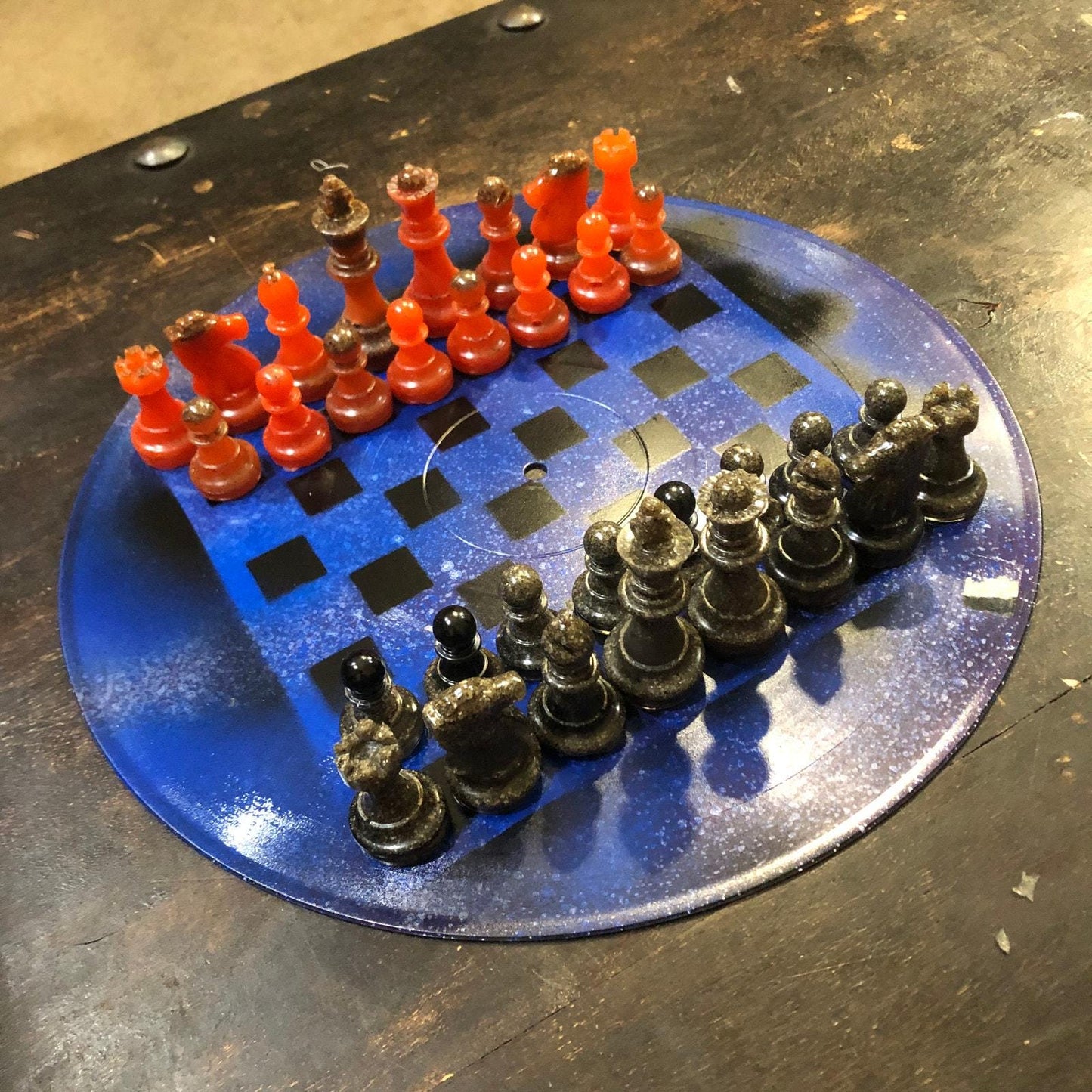 Vinyl Chess Set - Blue Fire (Resin Pieces)