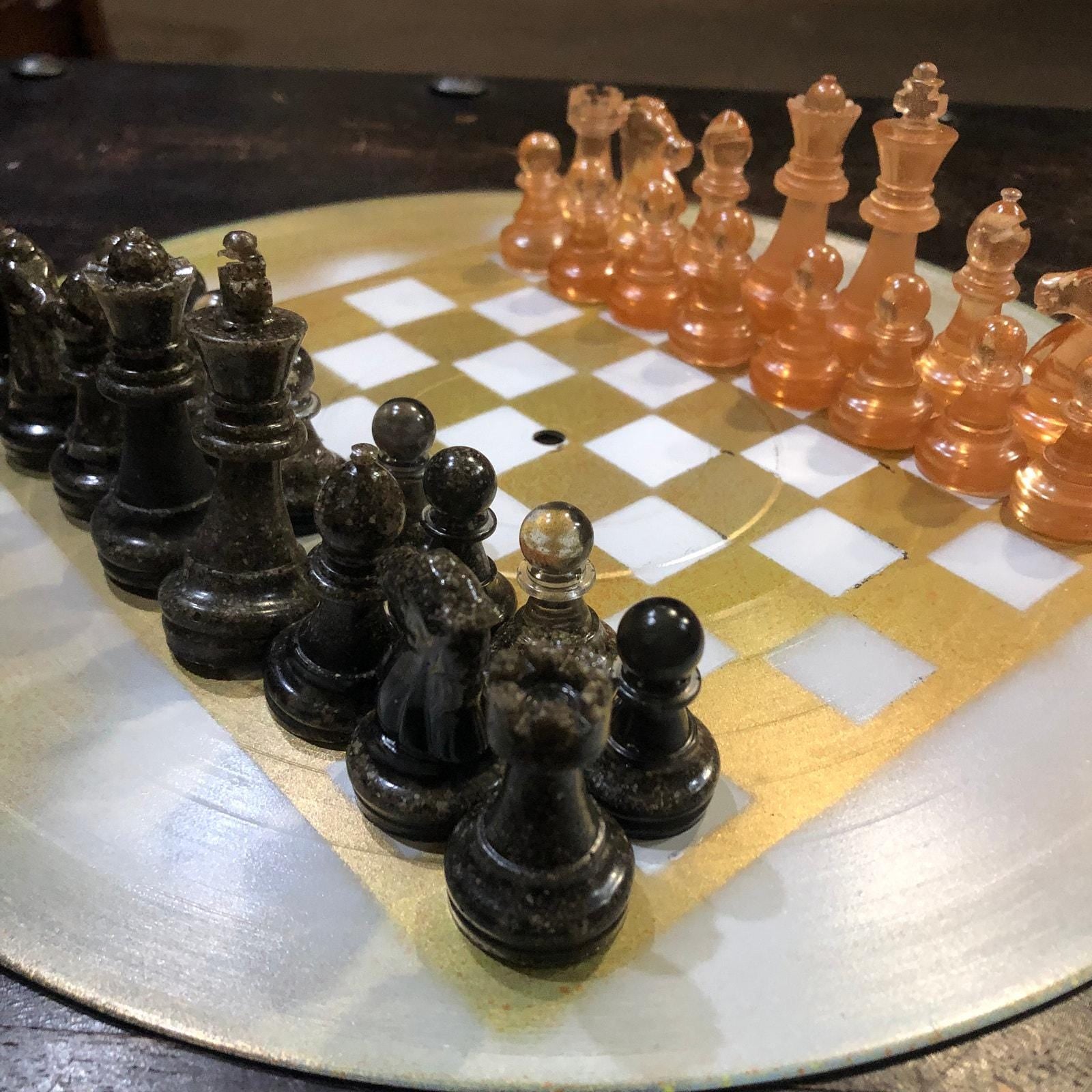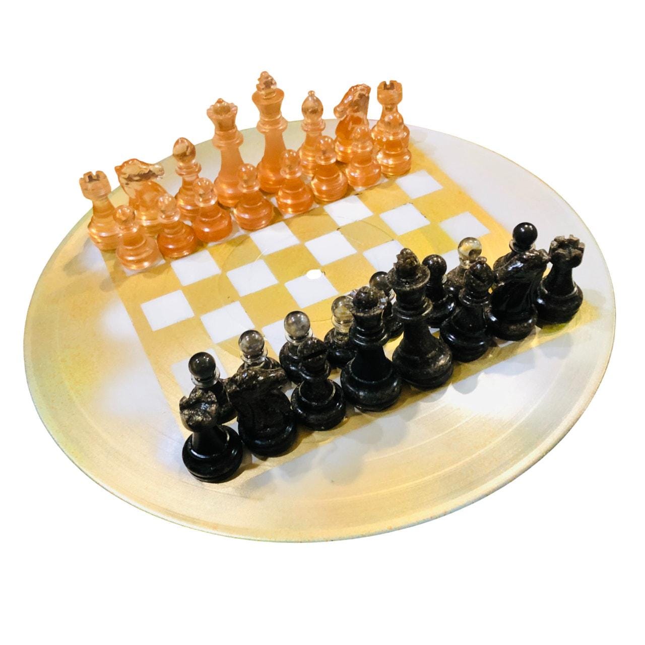 Introducing our unique Vinyl Record Chess Sets. Each set features handcrafted vinyl records transformed into eye-catching chess sets in a variety of vibrant colors. These one-of-a-kind chess sets are not just a game, but a piece of art to elevate your game nights and decor. Embrace the nostalgia of vinyl records with a modern twist in these bespoke, limited edition chess sets.