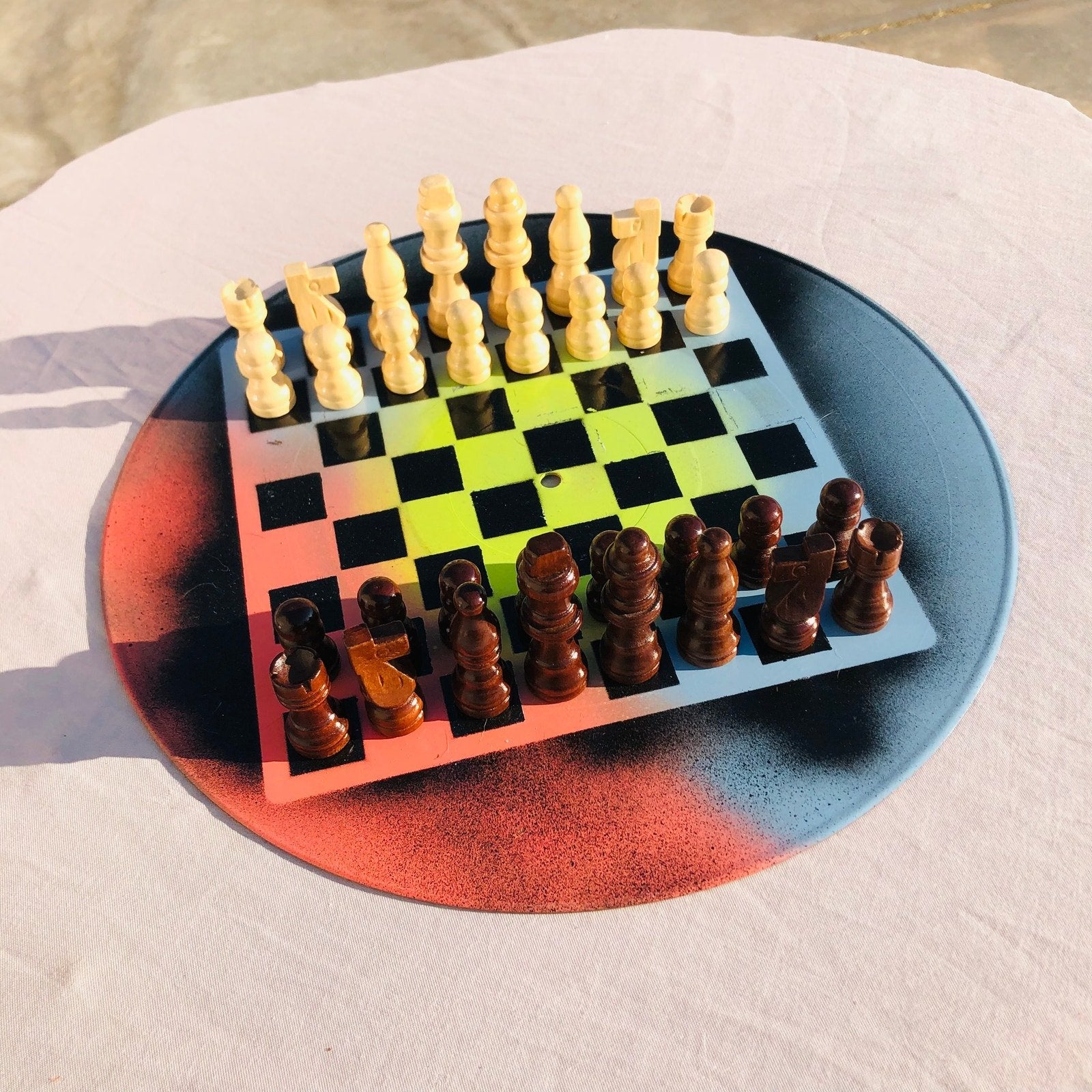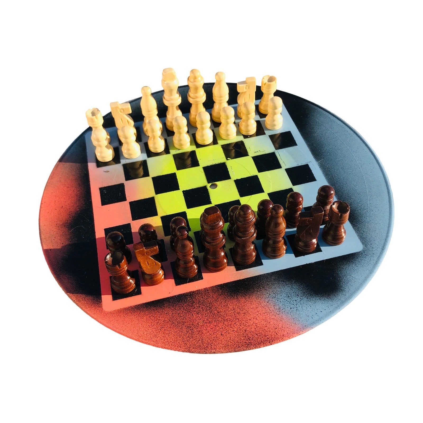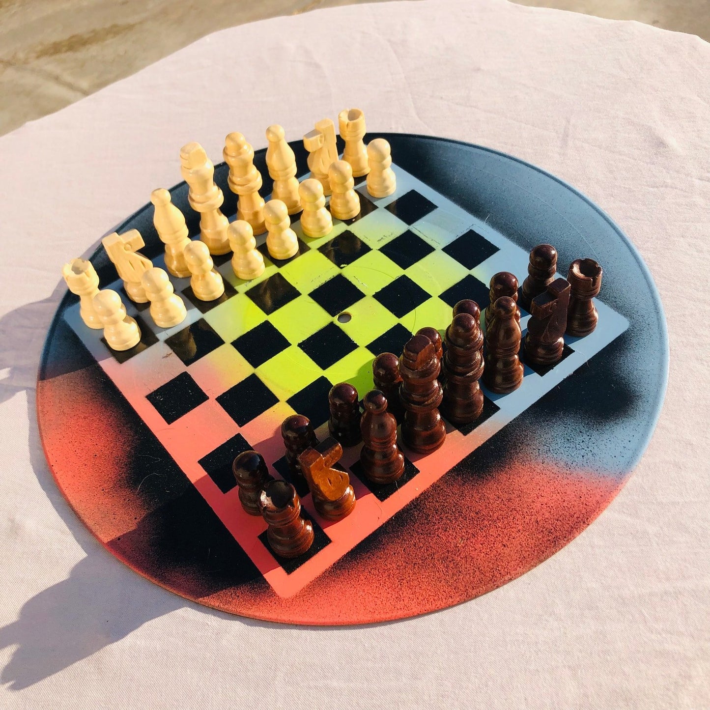 Introducing our unique Vinyl Record Chess Sets. Each set features handcrafted vinyl records transformed into eye-catching chess sets in a variety of vibrant colors. These one-of-a-kind chess sets are not just a game, but a piece of art to elevate your game nights and decor. Embrace the nostalgia of vinyl records with a modern twist in these bespoke, limited edition chess sets.