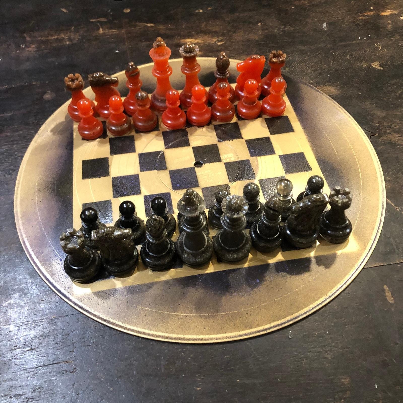 Introducing our unique Vinyl Record Chess Sets. Each set features handcrafted vinyl records transformed into eye-catching chess sets in a variety of vibrant colors. These one-of-a-kind chess sets are not just a game, but a piece of art to elevate your game nights and decor. Embrace the nostalgia of vinyl records with a modern twist in these bespoke, limited edition chess sets.