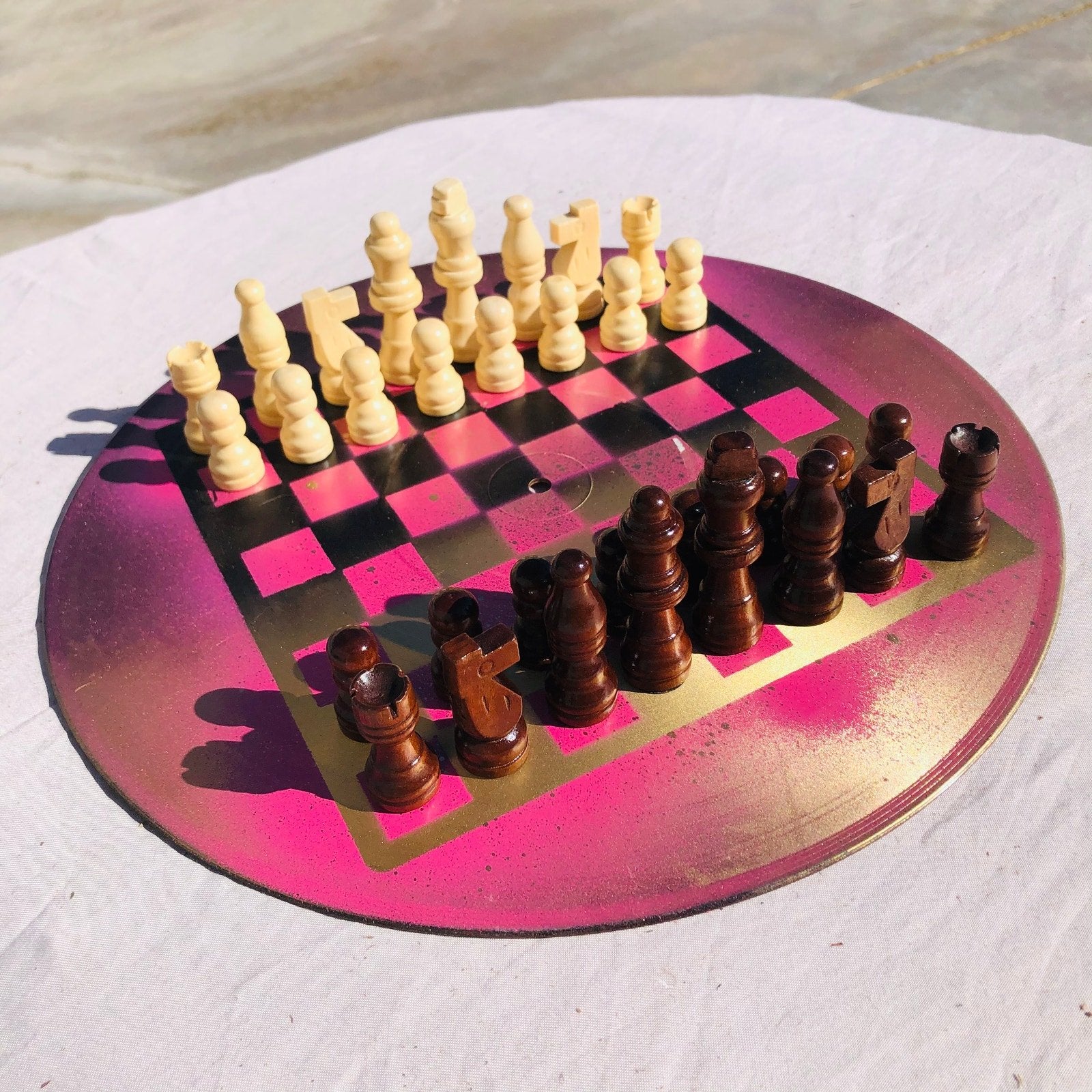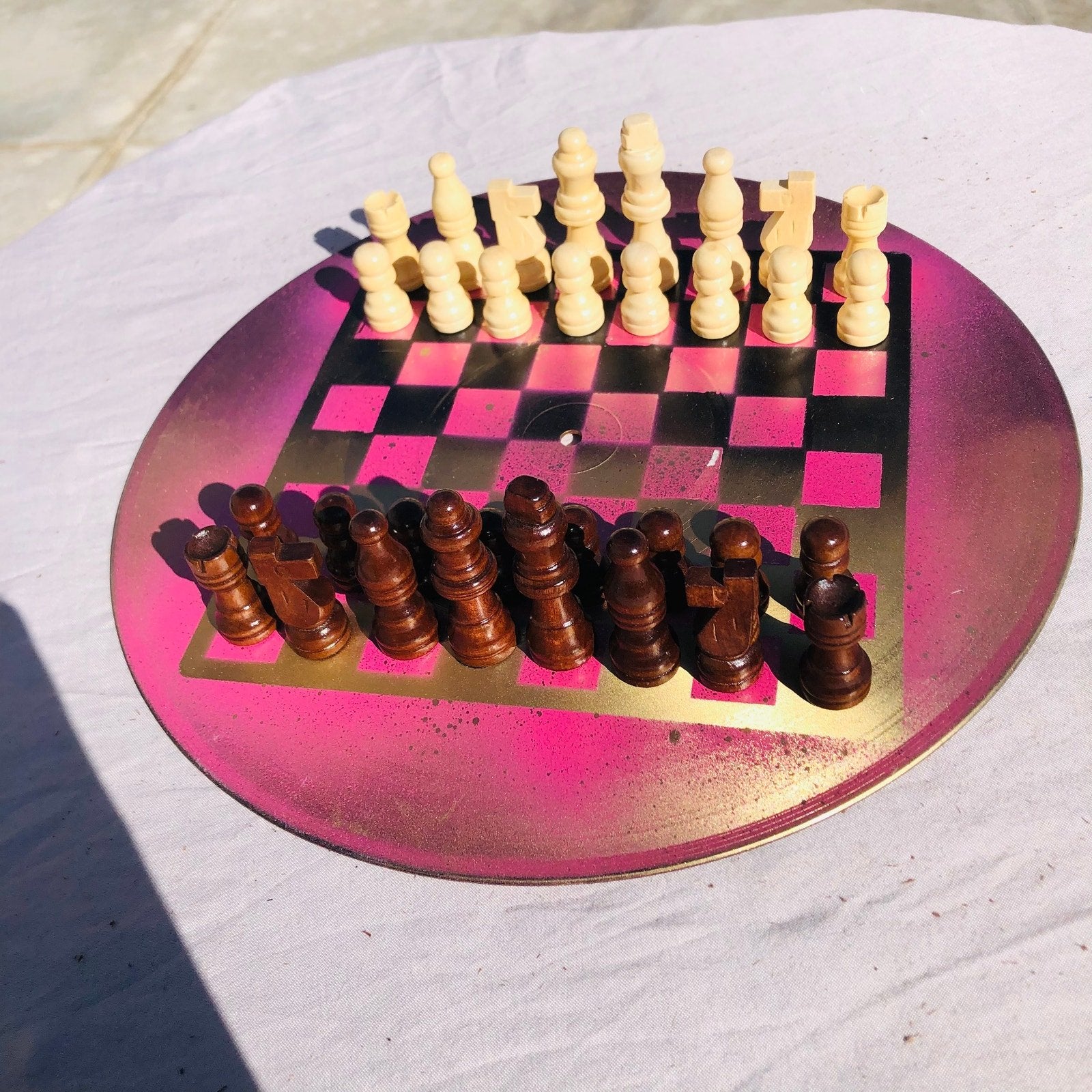 Introducing our unique Vinyl Record Chess Sets. Each set features handcrafted vinyl records transformed into eye-catching chess sets in a variety of vibrant colors. These one-of-a-kind chess sets are not just a game, but a piece of art to elevate your game nights and decor. Embrace the nostalgia of vinyl records with a modern twist in these bespoke, limited edition chess sets.