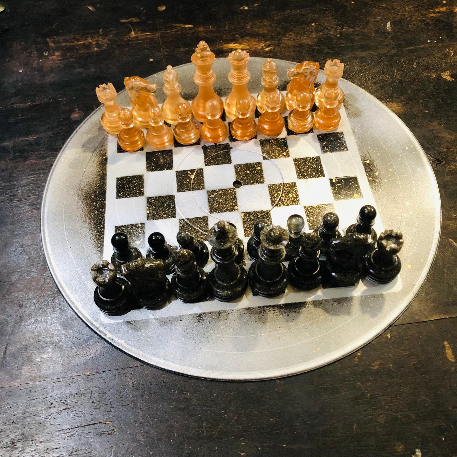 Introducing our unique Vinyl Record Chess Sets. Each set features handcrafted vinyl records transformed into eye-catching chess sets in a variety of vibrant colors. These one-of-a-kind chess sets are not just a game, but a piece of art to elevate your game nights and decor. Embrace the nostalgia of vinyl records with a modern twist in these bespoke, limited edition chess sets.