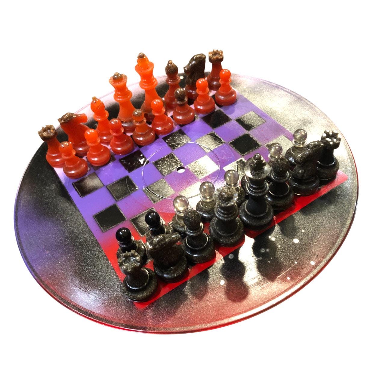 Introducing our unique Vinyl Record Chess Sets. Each set features handcrafted vinyl records transformed into eye-catching chess sets in a variety of vibrant colors. These one-of-a-kind chess sets are not just a game, but a piece of art to elevate your game nights and decor. Embrace the nostalgia of vinyl records with a modern twist in these bespoke, limited edition chess sets.
