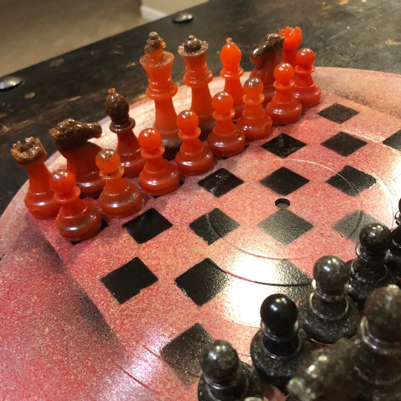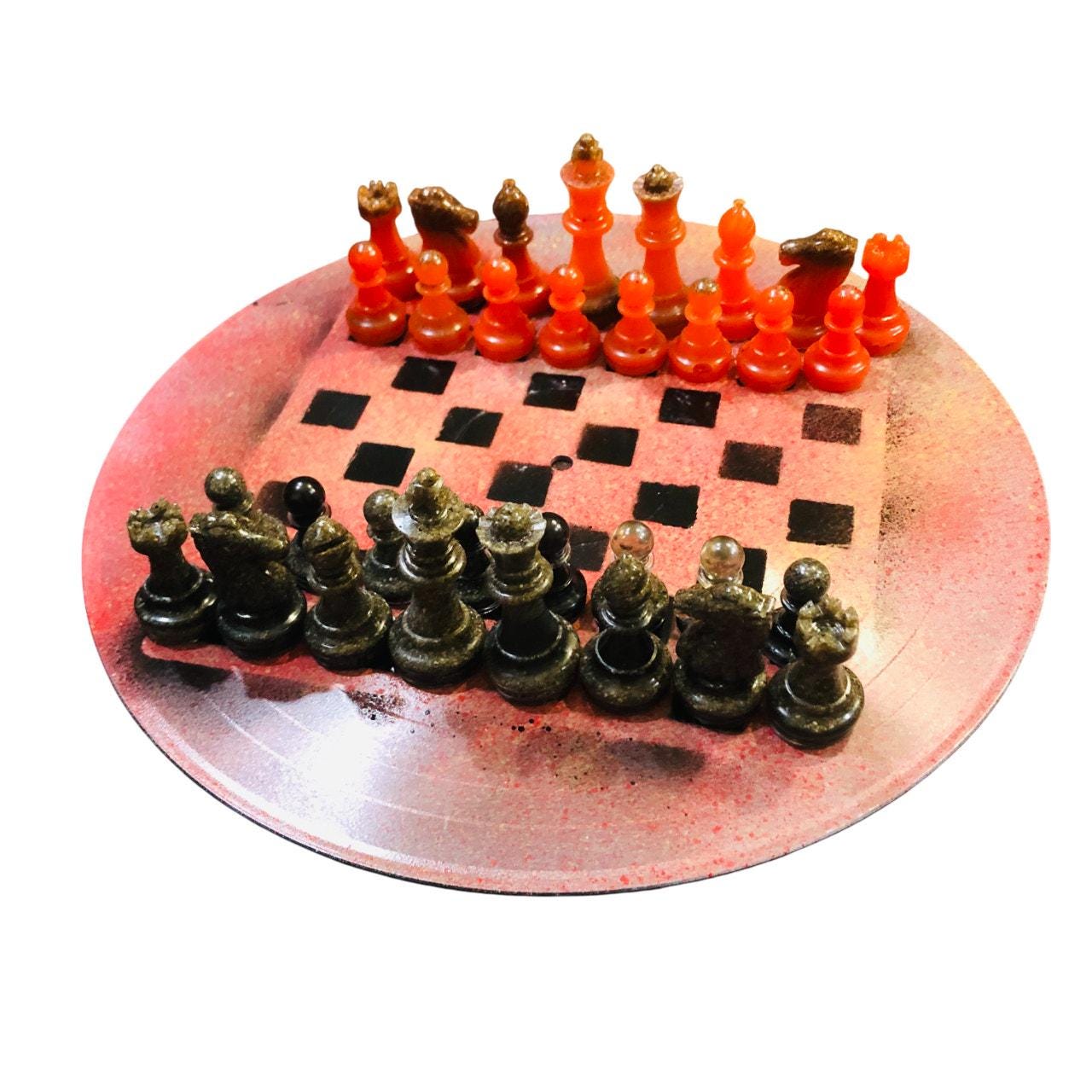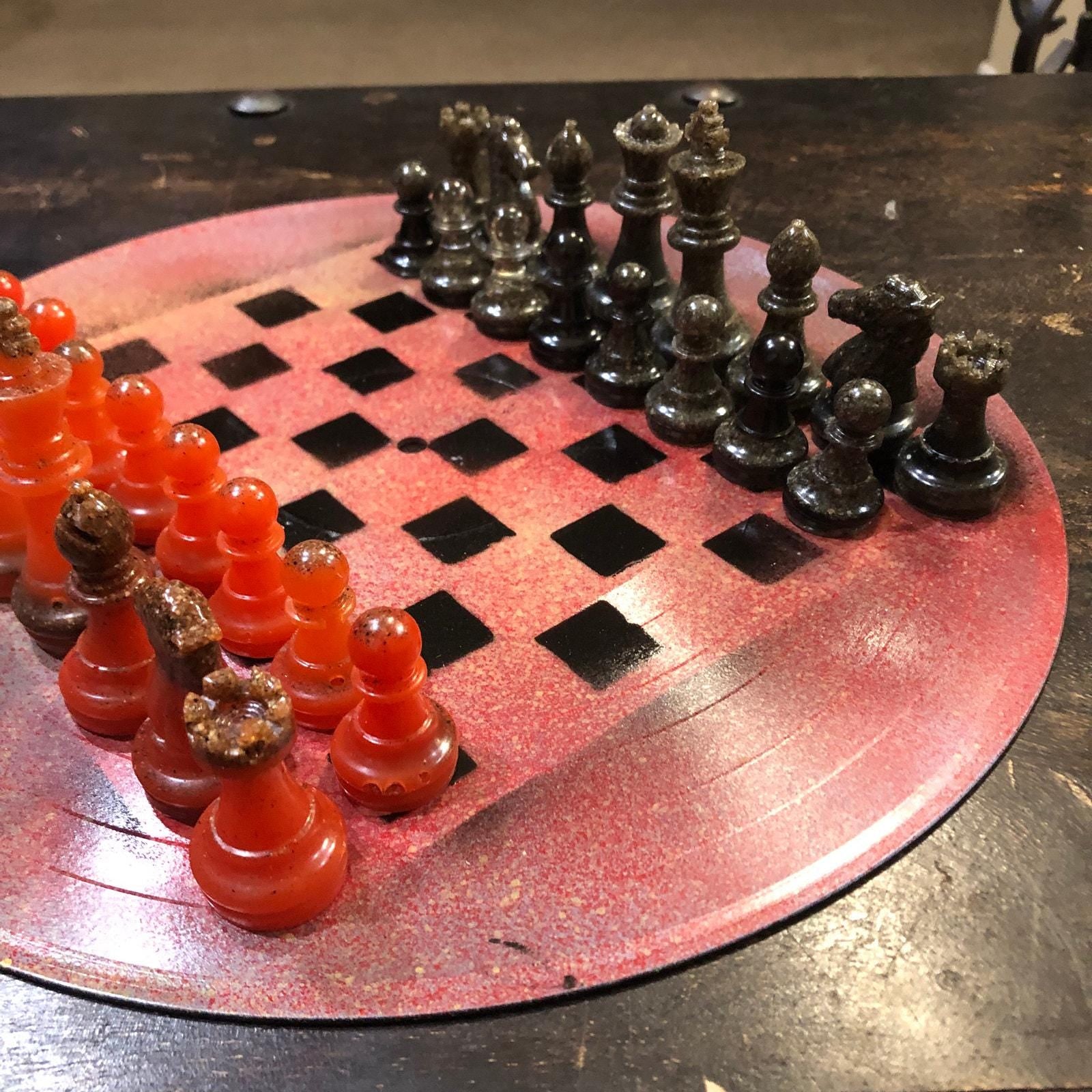 Introducing our unique Vinyl Record Chess Sets. Each set features handcrafted vinyl records transformed into eye-catching chess sets in a variety of vibrant colors. These one-of-a-kind chess sets are not just a game, but a piece of art to elevate your game nights and decor. Embrace the nostalgia of vinyl records with a modern twist in these bespoke, limited edition chess sets.