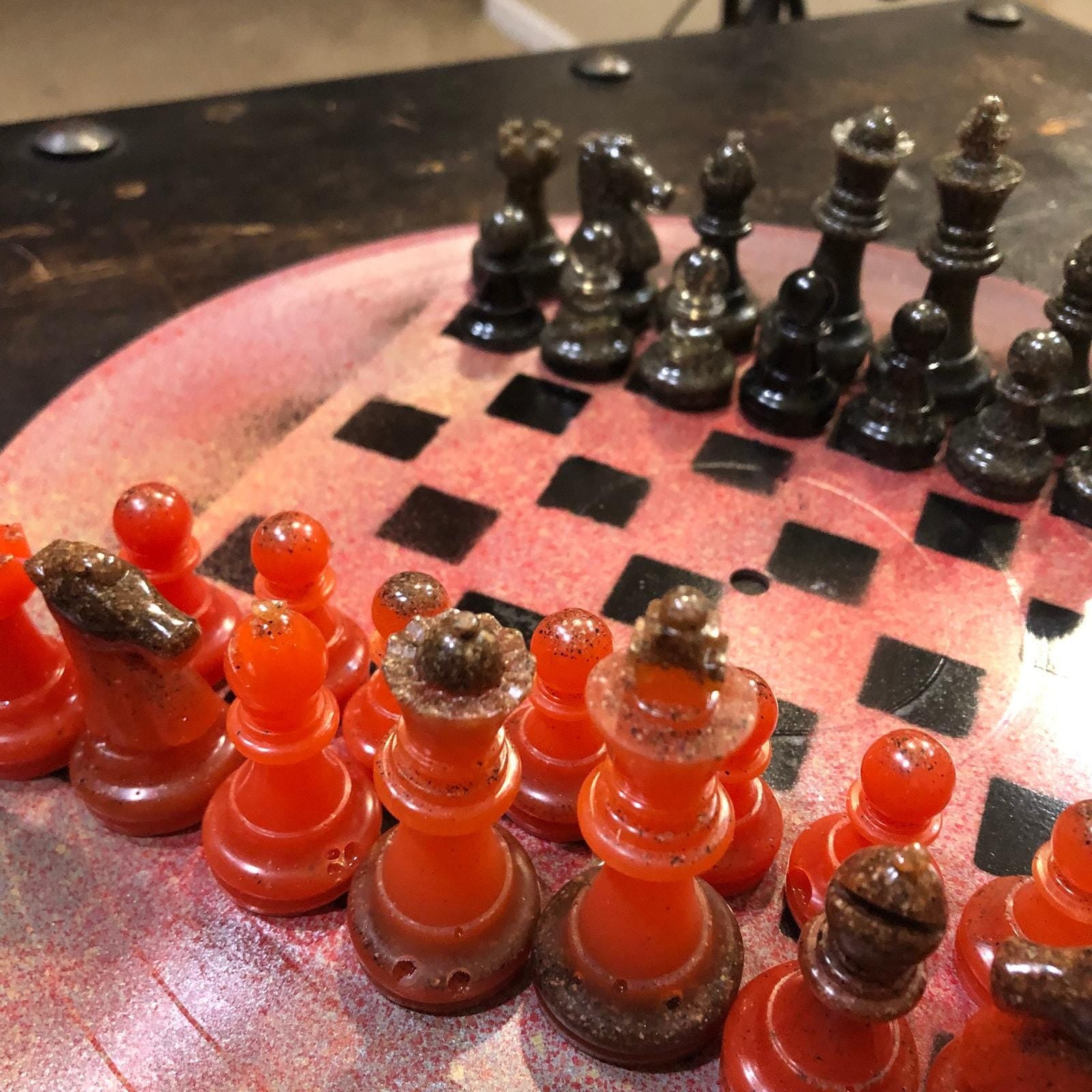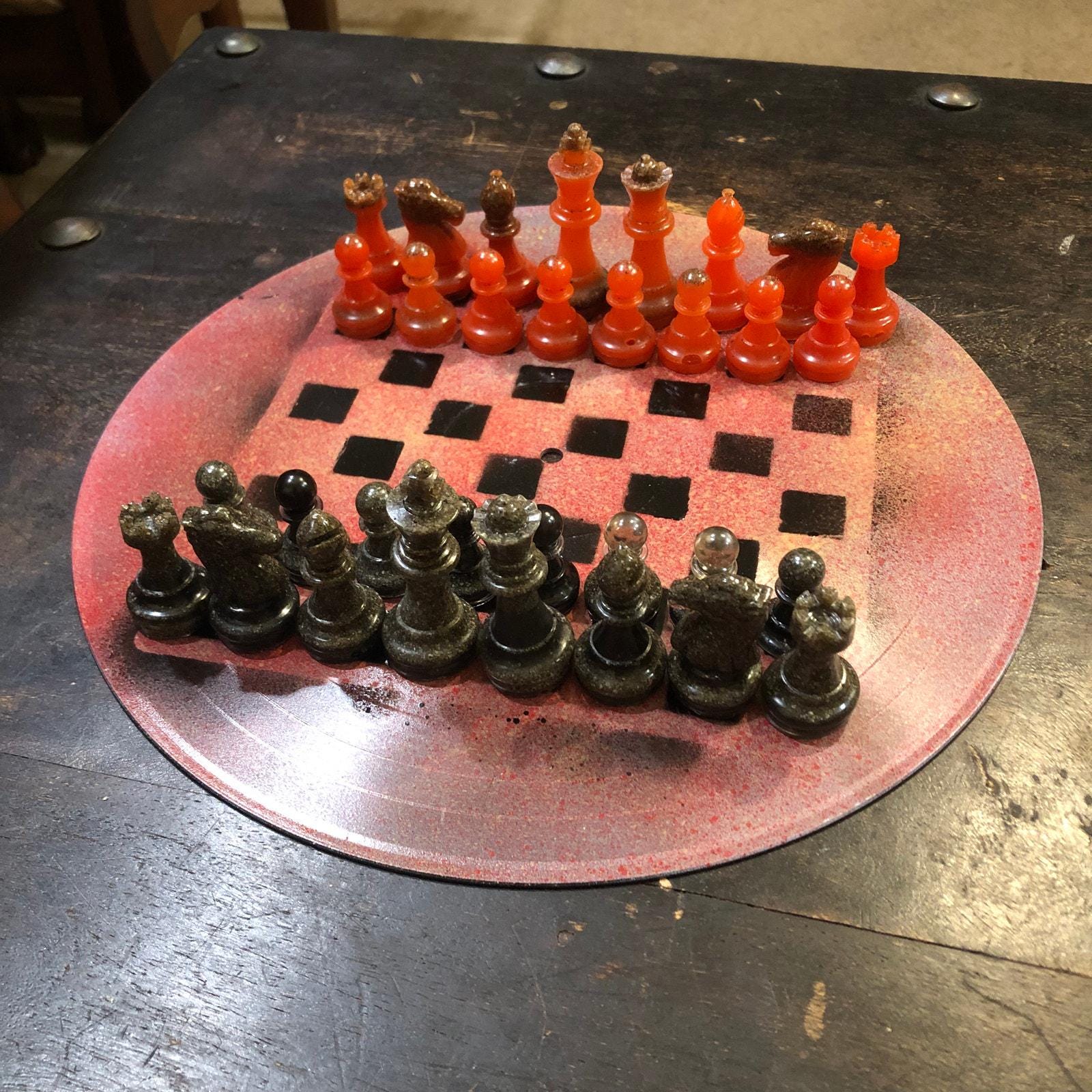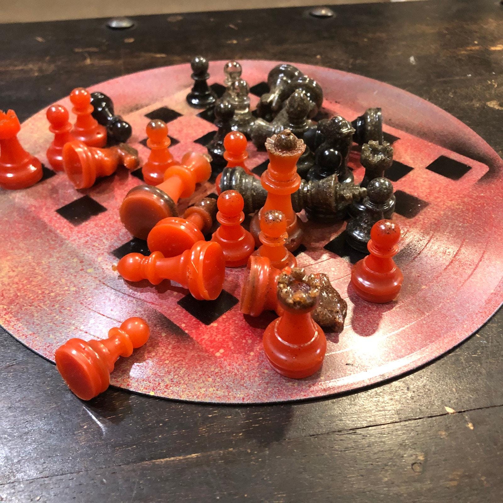 Introducing our unique Vinyl Record Chess Sets. Each set features handcrafted vinyl records transformed into eye-catching chess sets in a variety of vibrant colors. These one-of-a-kind chess sets are not just a game, but a piece of art to elevate your game nights and decor. Embrace the nostalgia of vinyl records with a modern twist in these bespoke, limited edition chess sets.