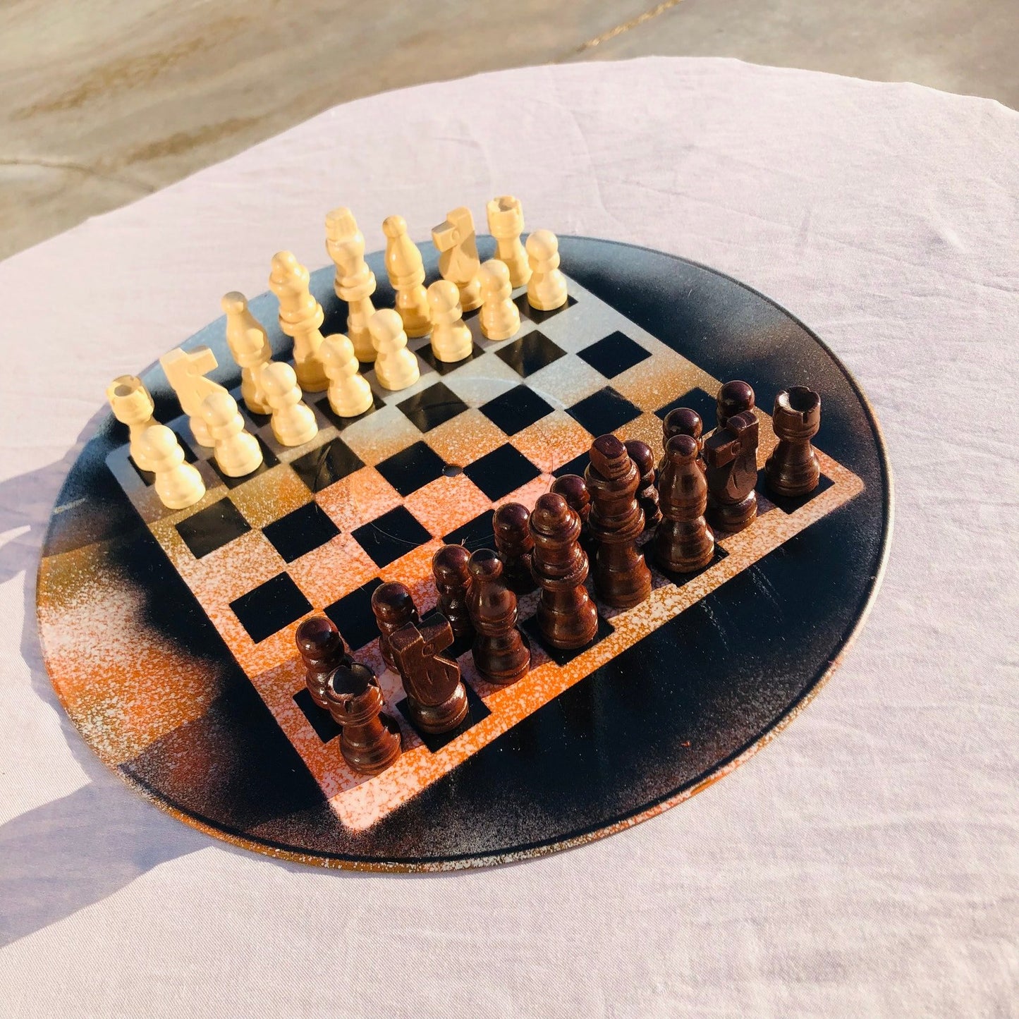Introducing our unique Vinyl Record Chess Sets. Each set features handcrafted vinyl records transformed into eye-catching chess sets in a variety of vibrant colors. These one-of-a-kind chess sets are not just a game, but a piece of art to elevate your game nights and decor. Embrace the nostalgia of vinyl records with a modern twist in these bespoke, limited edition chess sets.