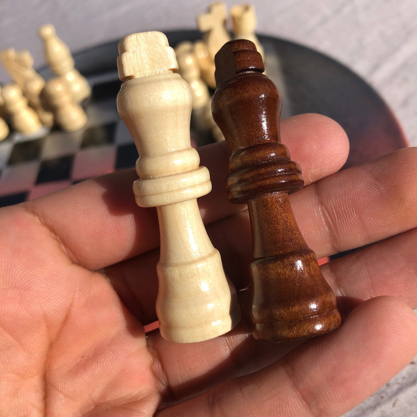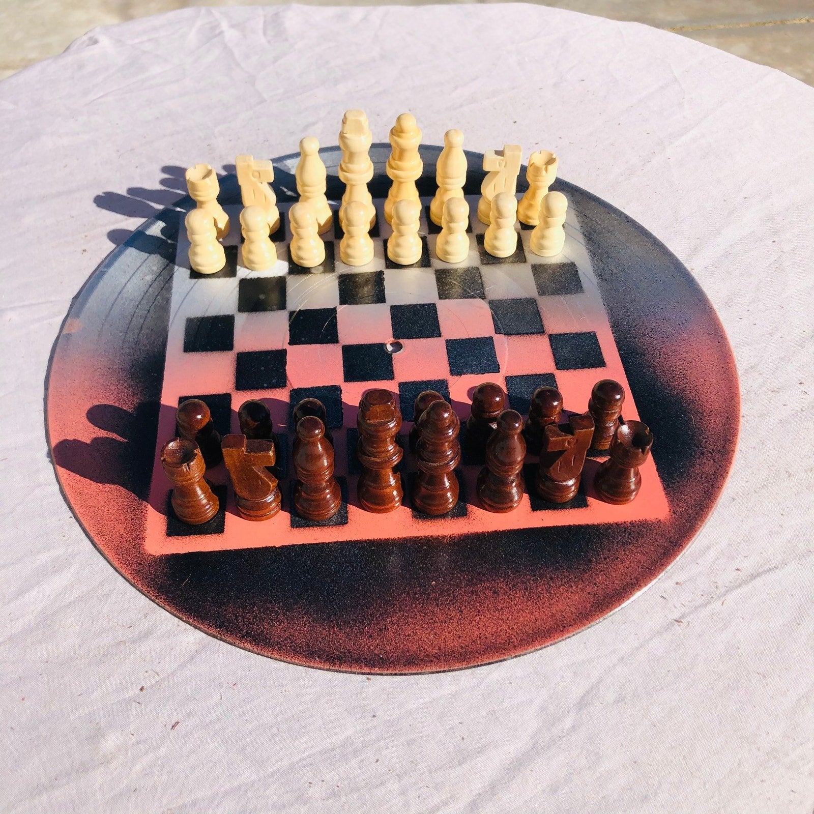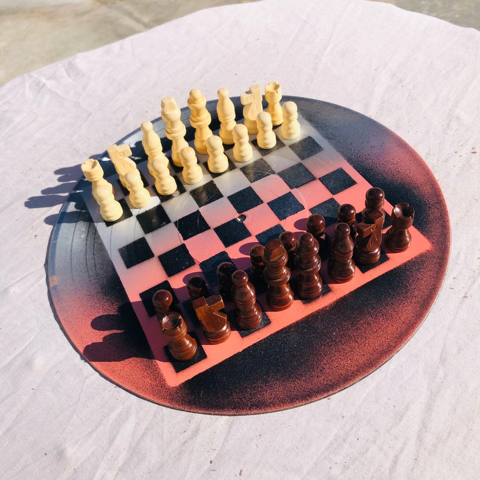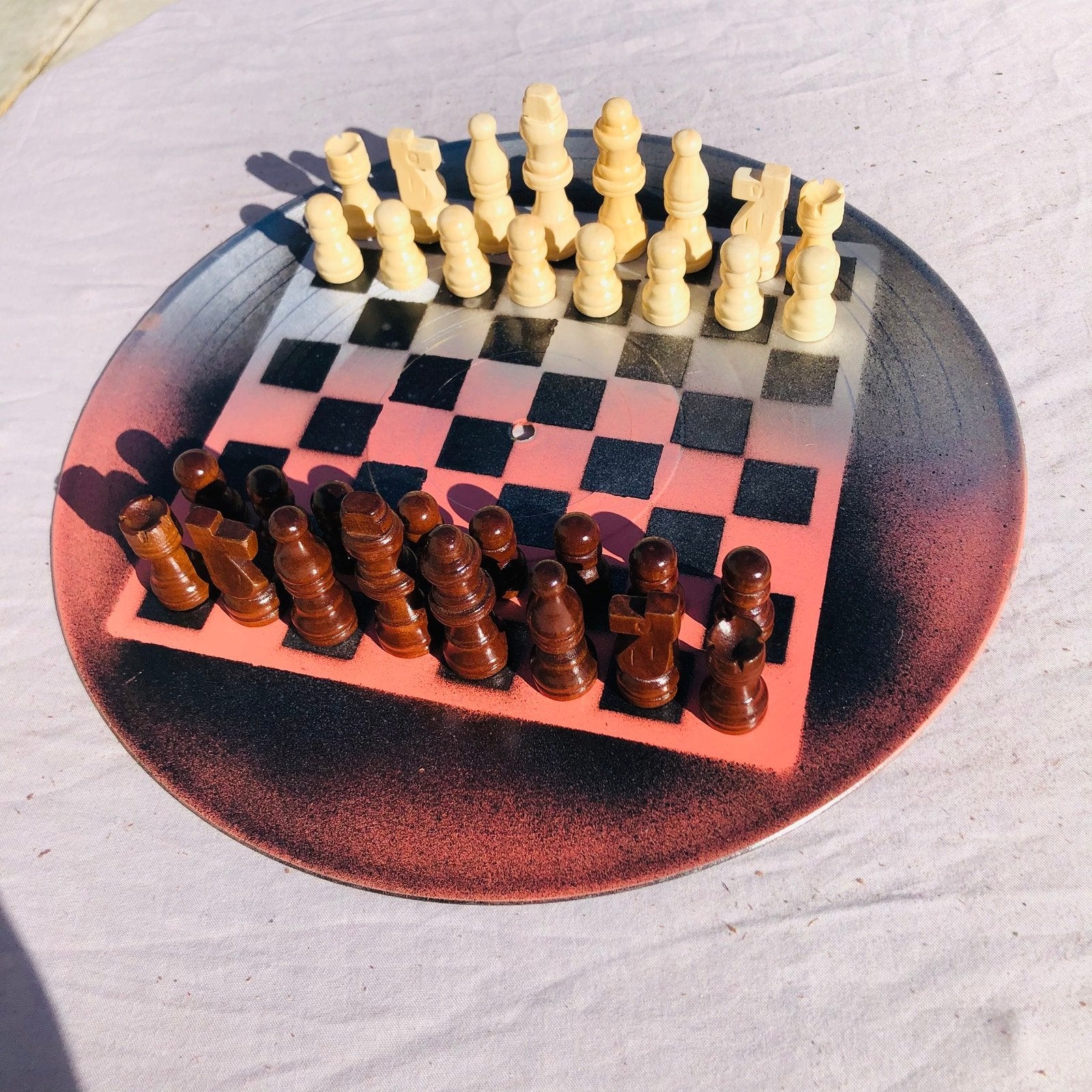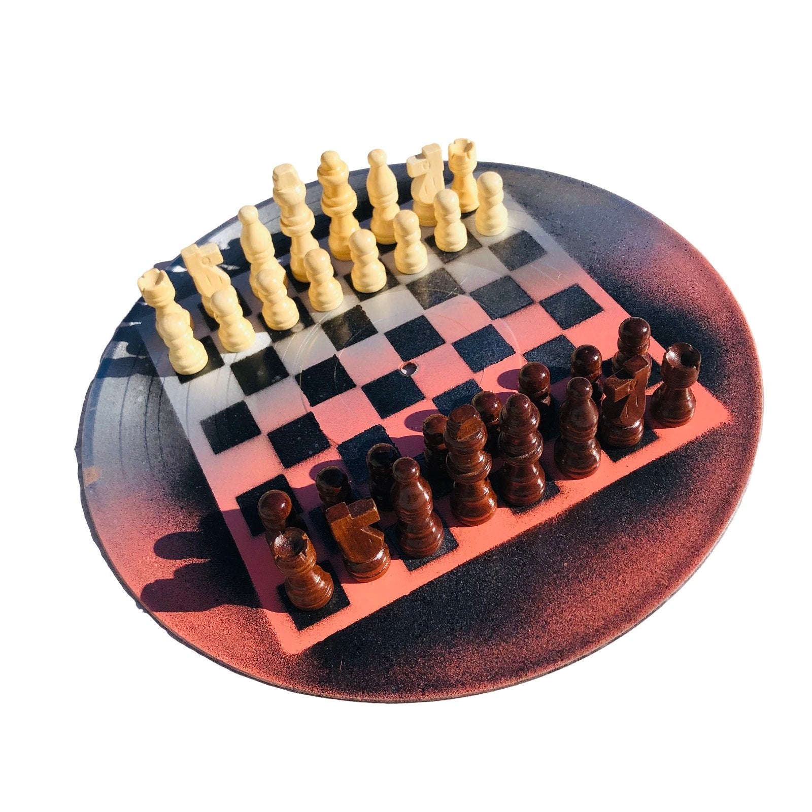 Introducing our unique Vinyl Record Chess Sets. Each set features handcrafted vinyl records transformed into eye-catching chess sets in a variety of vibrant colors. These one-of-a-kind chess sets are not just a game, but a piece of art to elevate your game nights and decor. Embrace the nostalgia of vinyl records with a modern twist in these bespoke, limited edition chess sets.