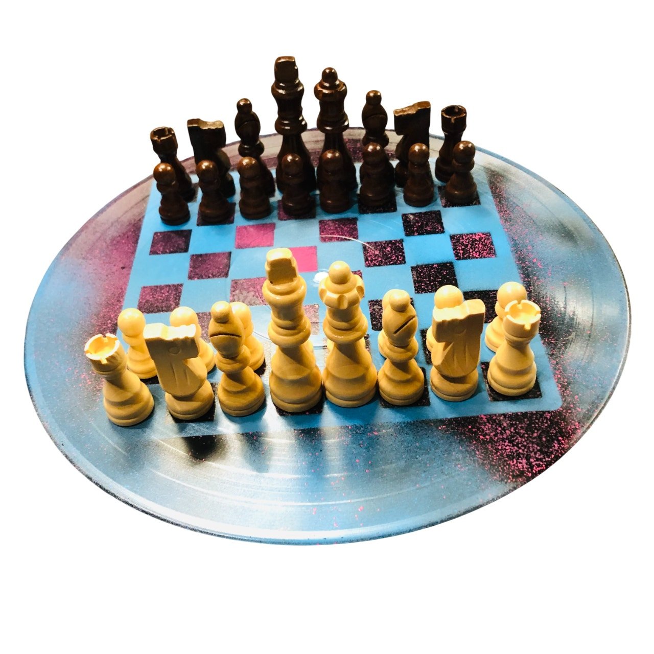 Introducing our unique Vinyl Record Chess Sets. Each set features handcrafted vinyl records transformed into eye-catching chess sets in a variety of vibrant colors. These one-of-a-kind chess sets are not just a game, but a piece of art to elevate your game nights and decor. Embrace the nostalgia of vinyl records with a modern twist in these bespoke, limited edition chess sets.