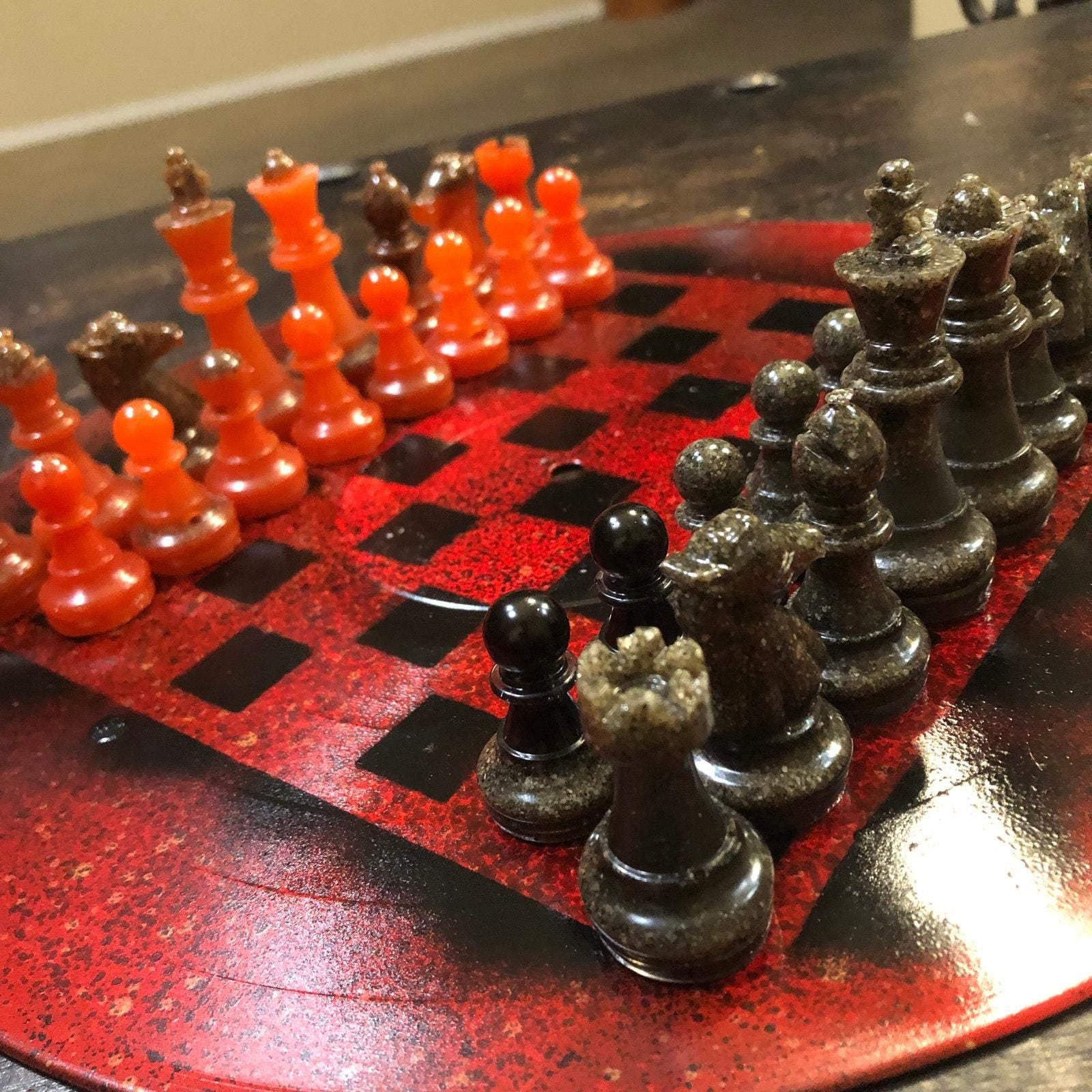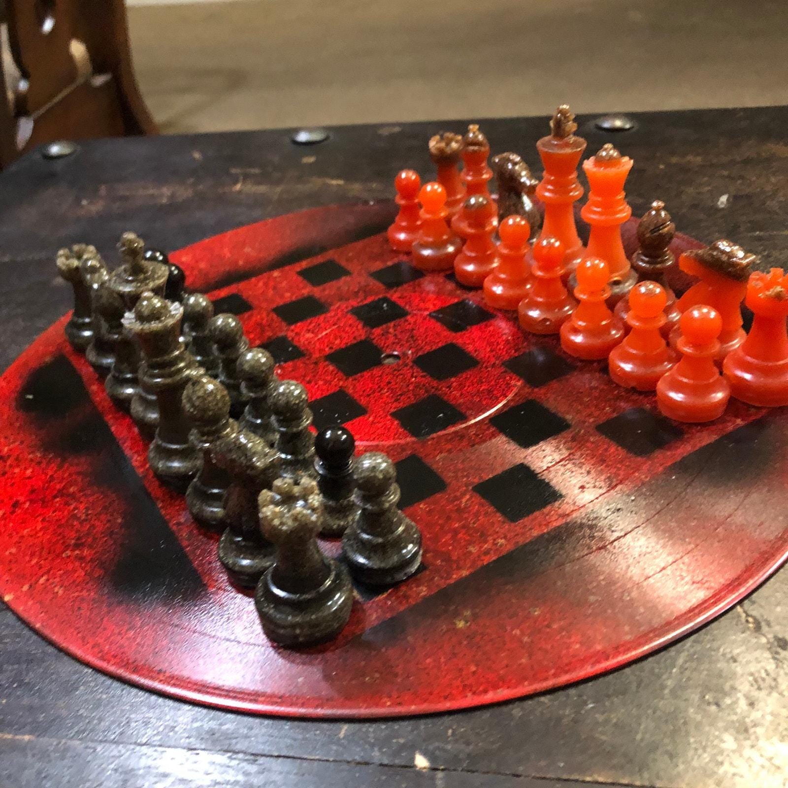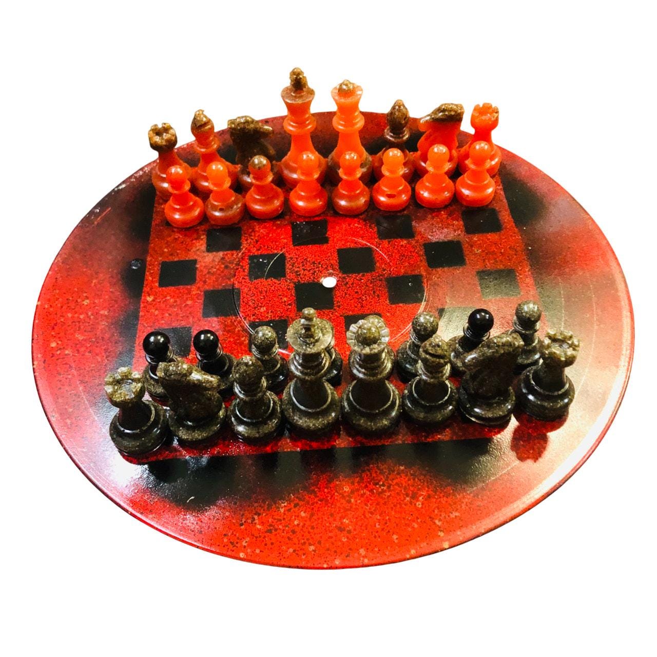 Introducing our unique Vinyl Record Chess Sets. Each set features handcrafted vinyl records transformed into eye-catching chess sets in a variety of vibrant colors. These one-of-a-kind chess sets are not just a game, but a piece of art to elevate your game nights and decor. Embrace the nostalgia of vinyl records with a modern twist in these bespoke, limited edition chess sets.