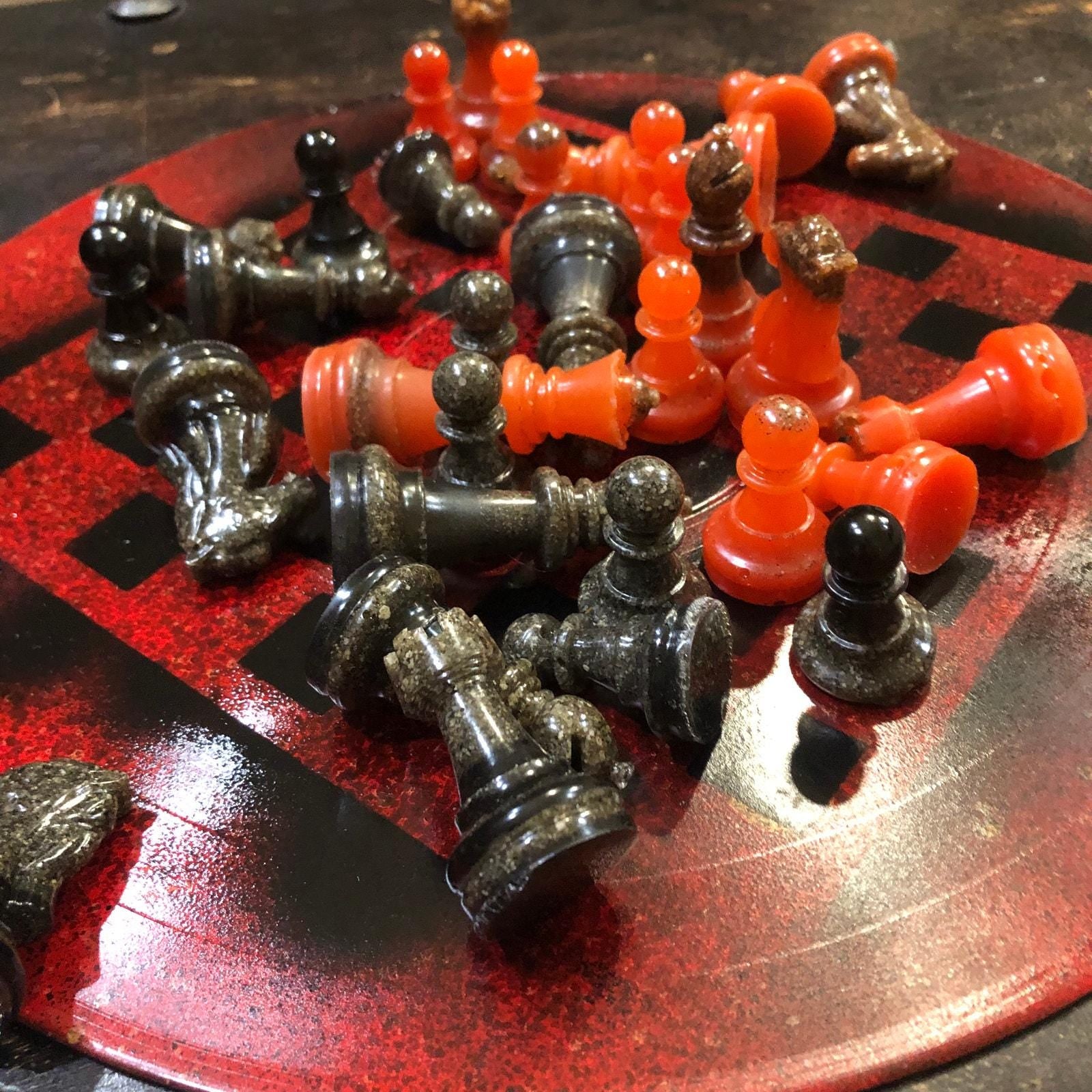 Vinyl Chess Set - Pitchfork Red (Resin Pieces)
