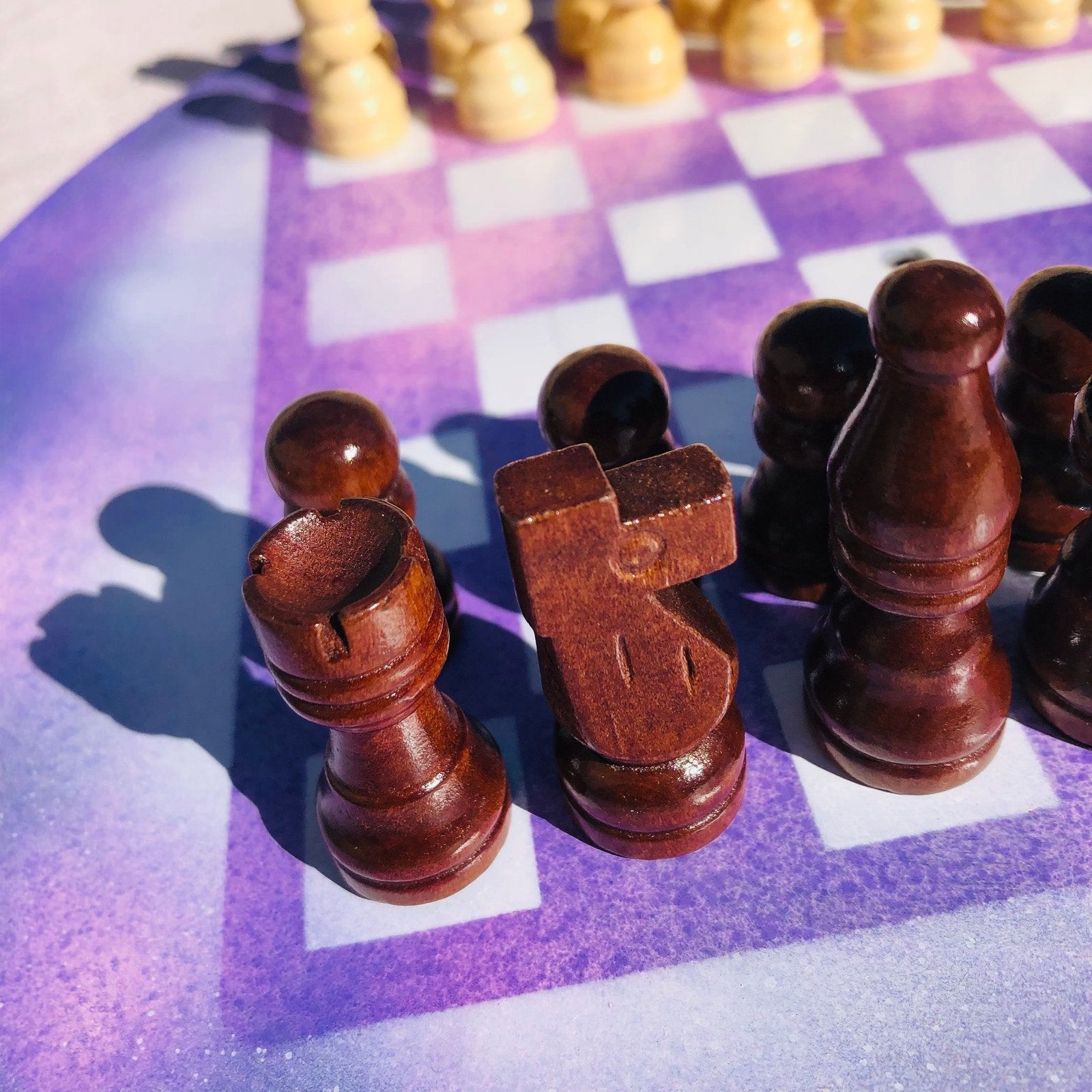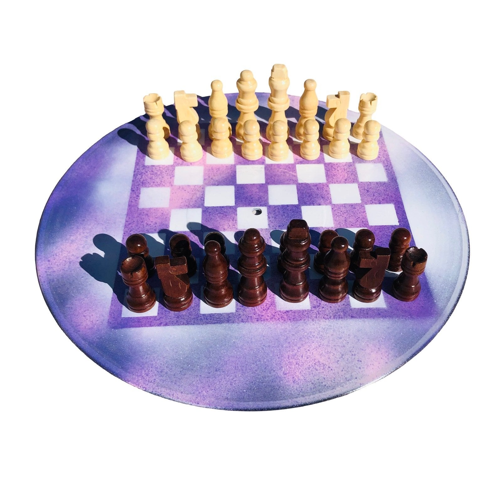Introducing our unique Vinyl Record Chess Sets. Each set features handcrafted vinyl records transformed into eye-catching chess sets in a variety of vibrant colors. These one-of-a-kind chess sets are not just a game, but a piece of art to elevate your game nights and decor. Embrace the nostalgia of vinyl records with a modern twist in these bespoke, limited edition chess sets.