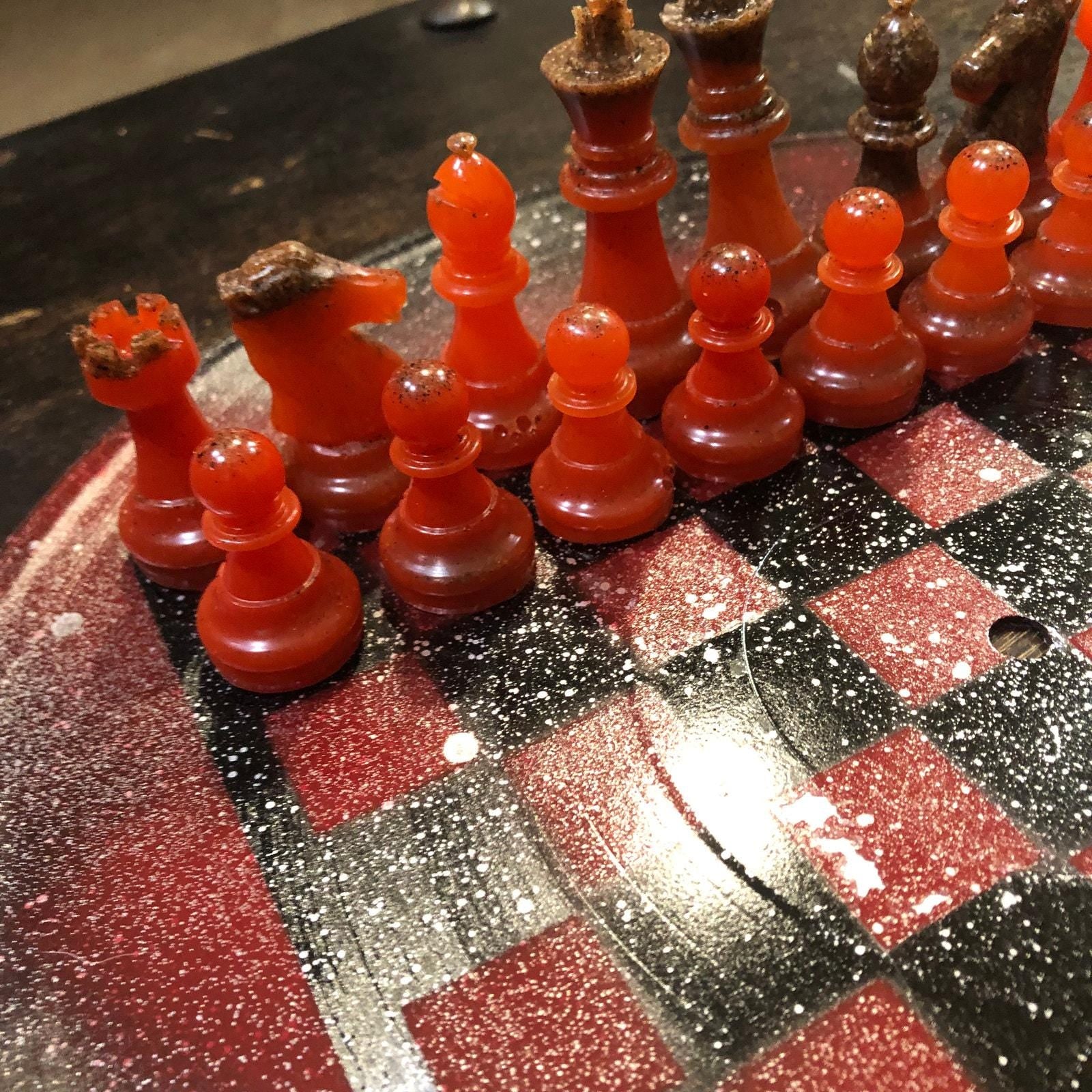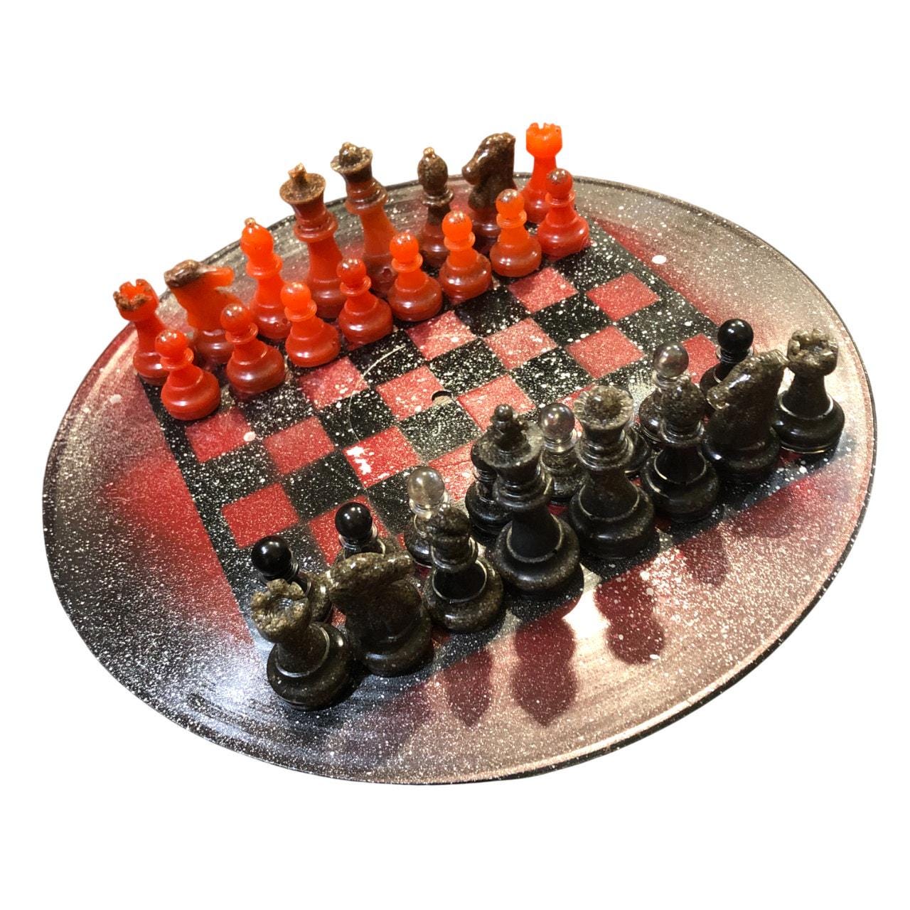 Introducing our unique Vinyl Record Chess Sets. Each set features handcrafted vinyl records transformed into eye-catching chess sets in a variety of vibrant colors. These one-of-a-kind chess sets are not just a game, but a piece of art to elevate your game nights and decor. Embrace the nostalgia of vinyl records with a modern twist in these bespoke, limited edition chess sets.
