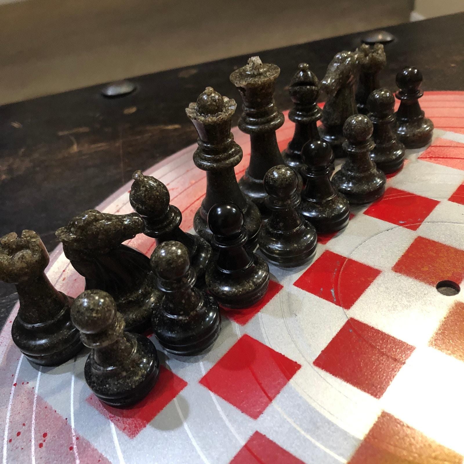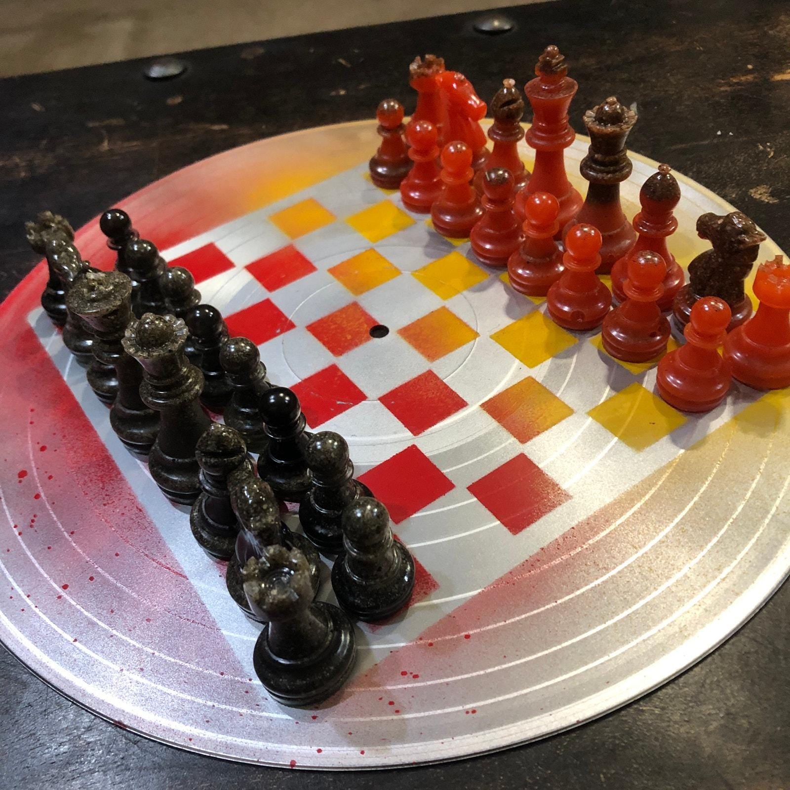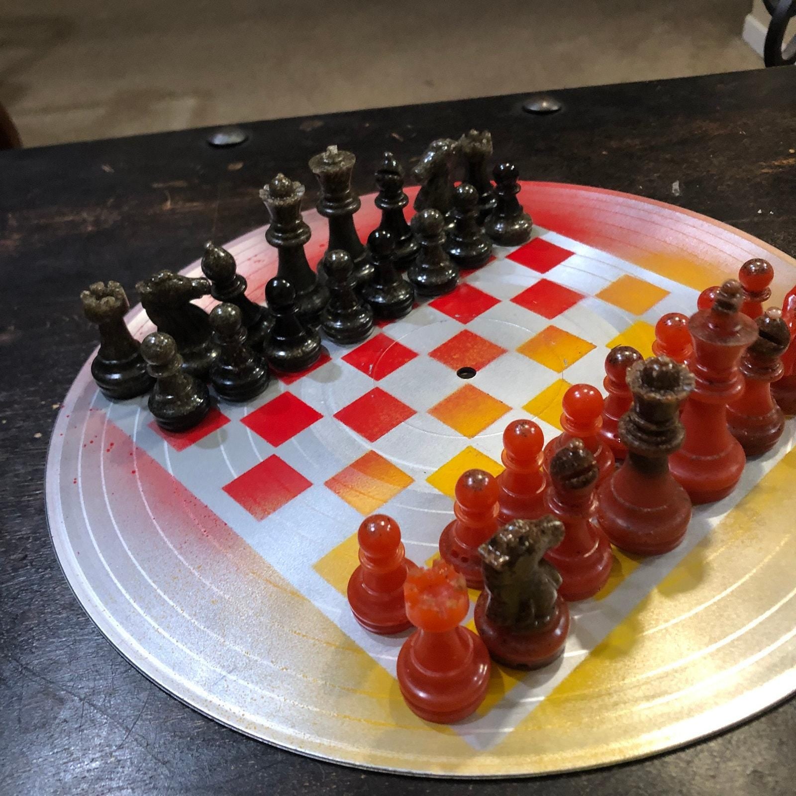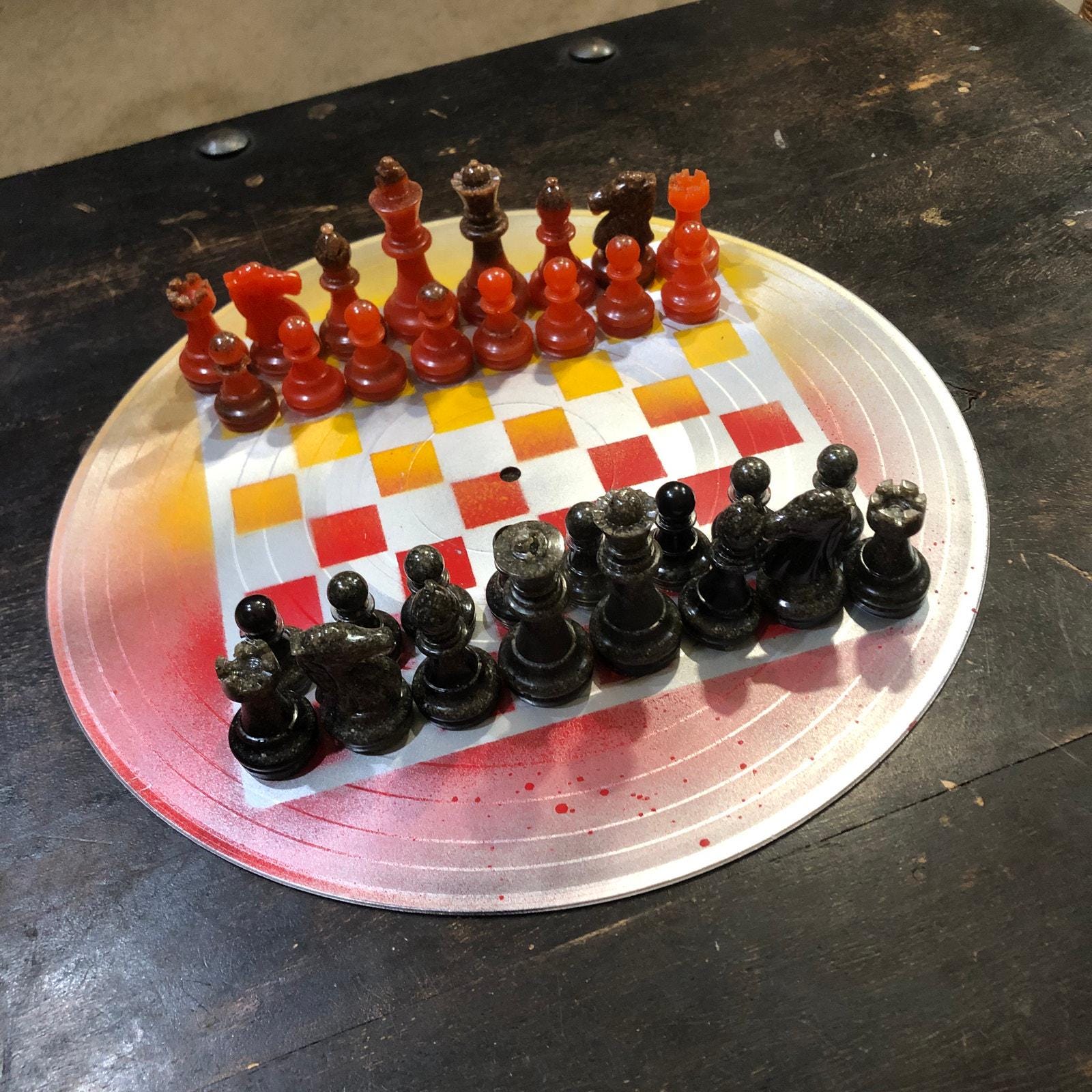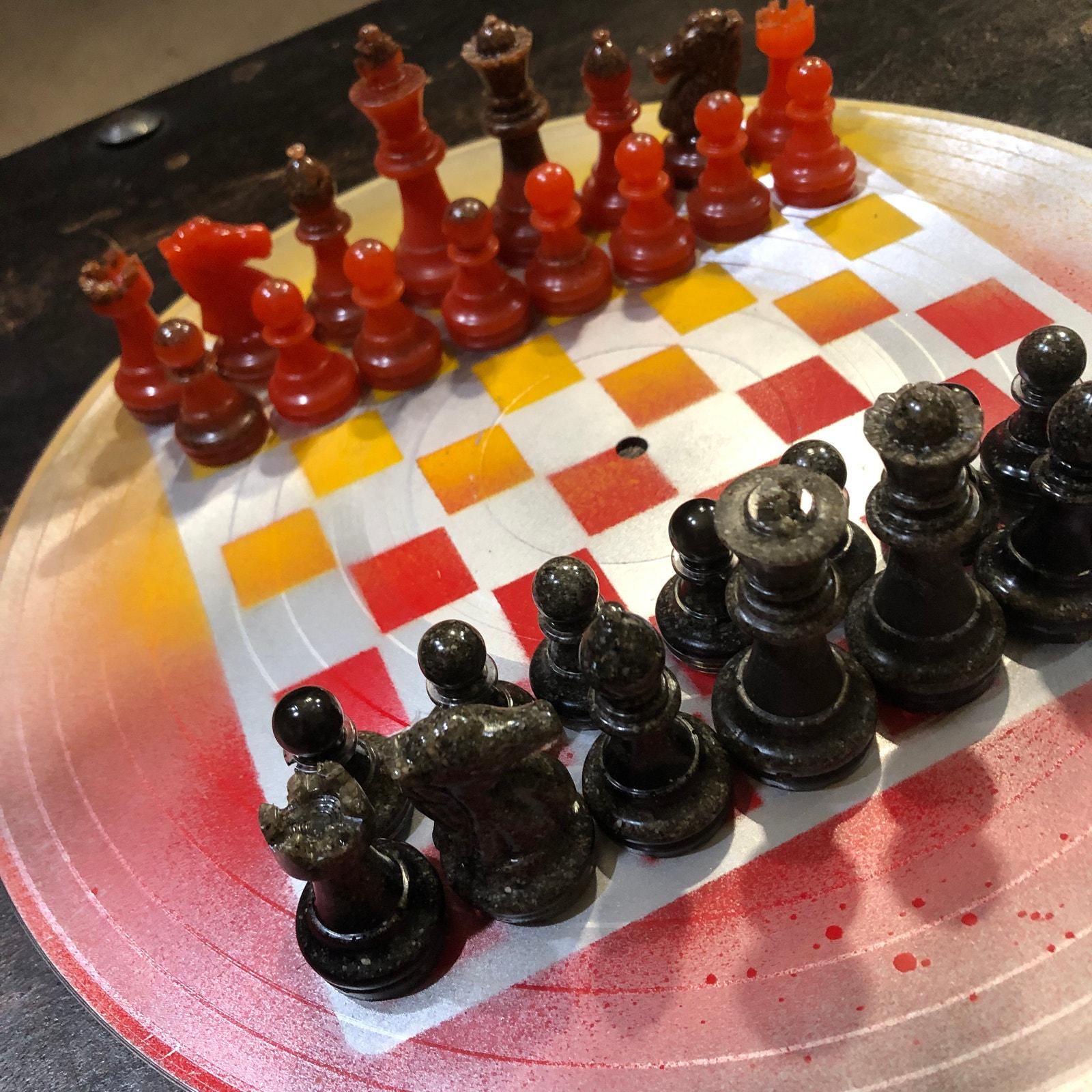 Introducing our unique Vinyl Record Chess Sets. Each set features handcrafted vinyl records transformed into eye-catching chess sets in a variety of vibrant colors. These one-of-a-kind chess sets are not just a game, but a piece of art to elevate your game nights and decor. Embrace the nostalgia of vinyl records with a modern twist in these bespoke, limited edition chess sets.