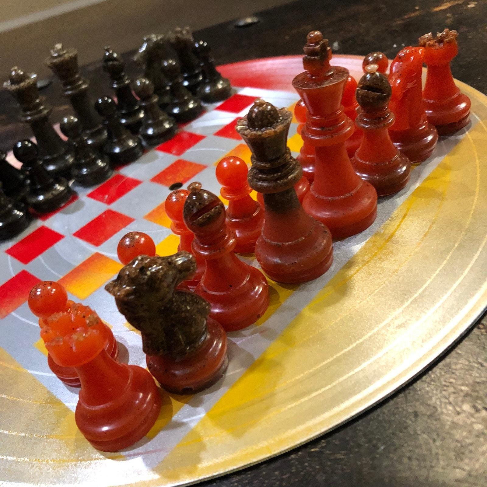 Vinyl Chess Set - Red Yellow Chrome (Resin Pieces)
